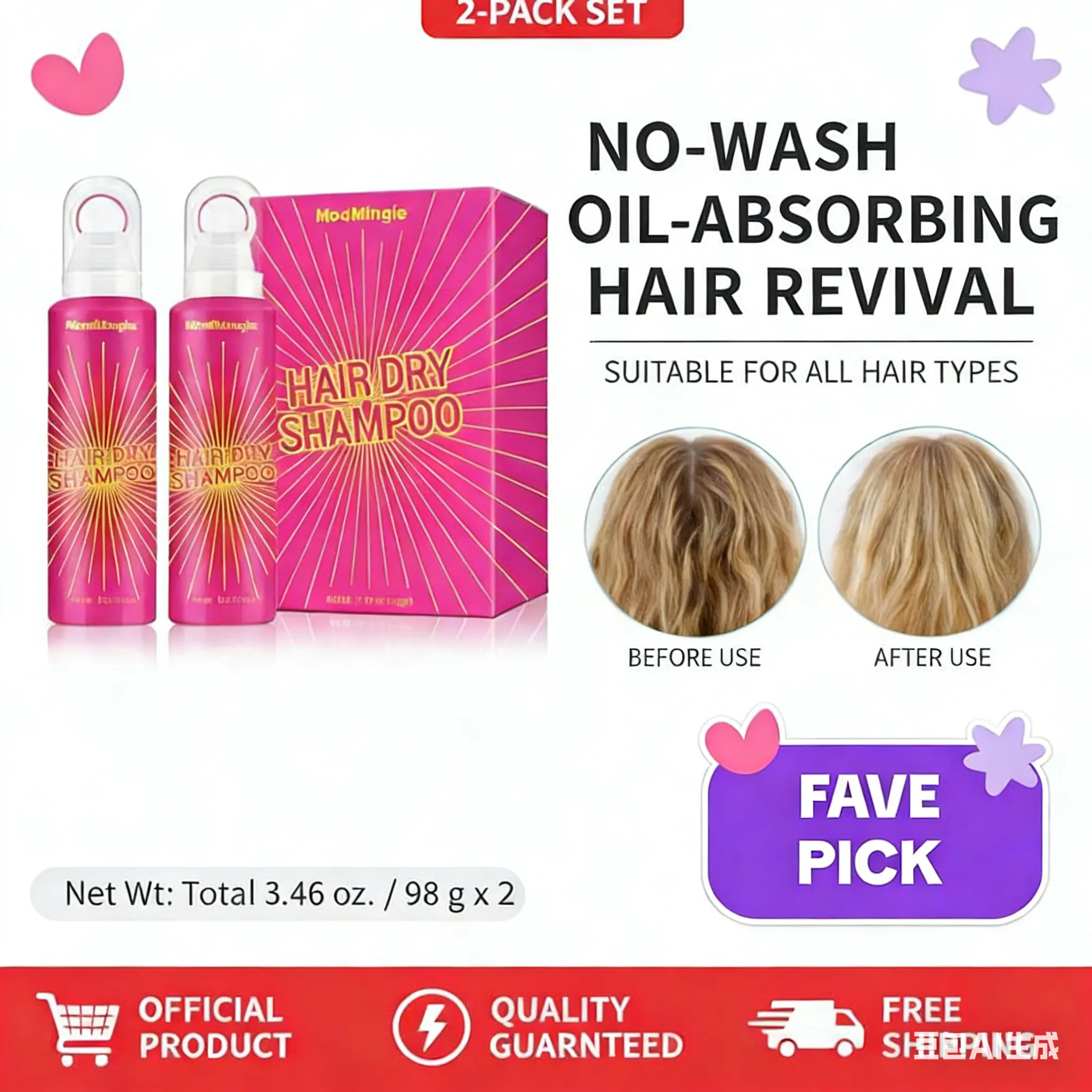 Great dry shampoo!! I also like how it sprays out in all directions. Like the fact i got a double pack.