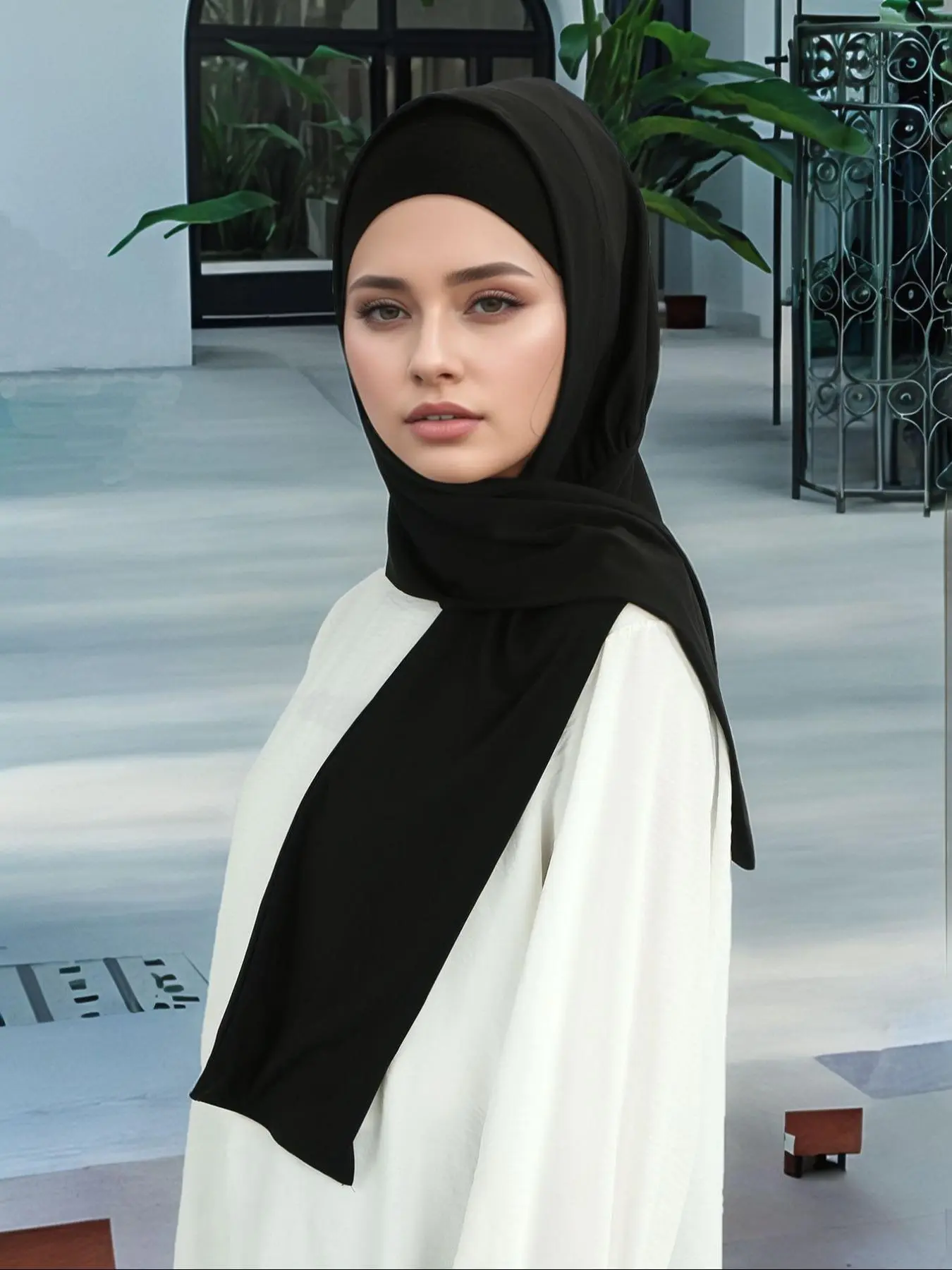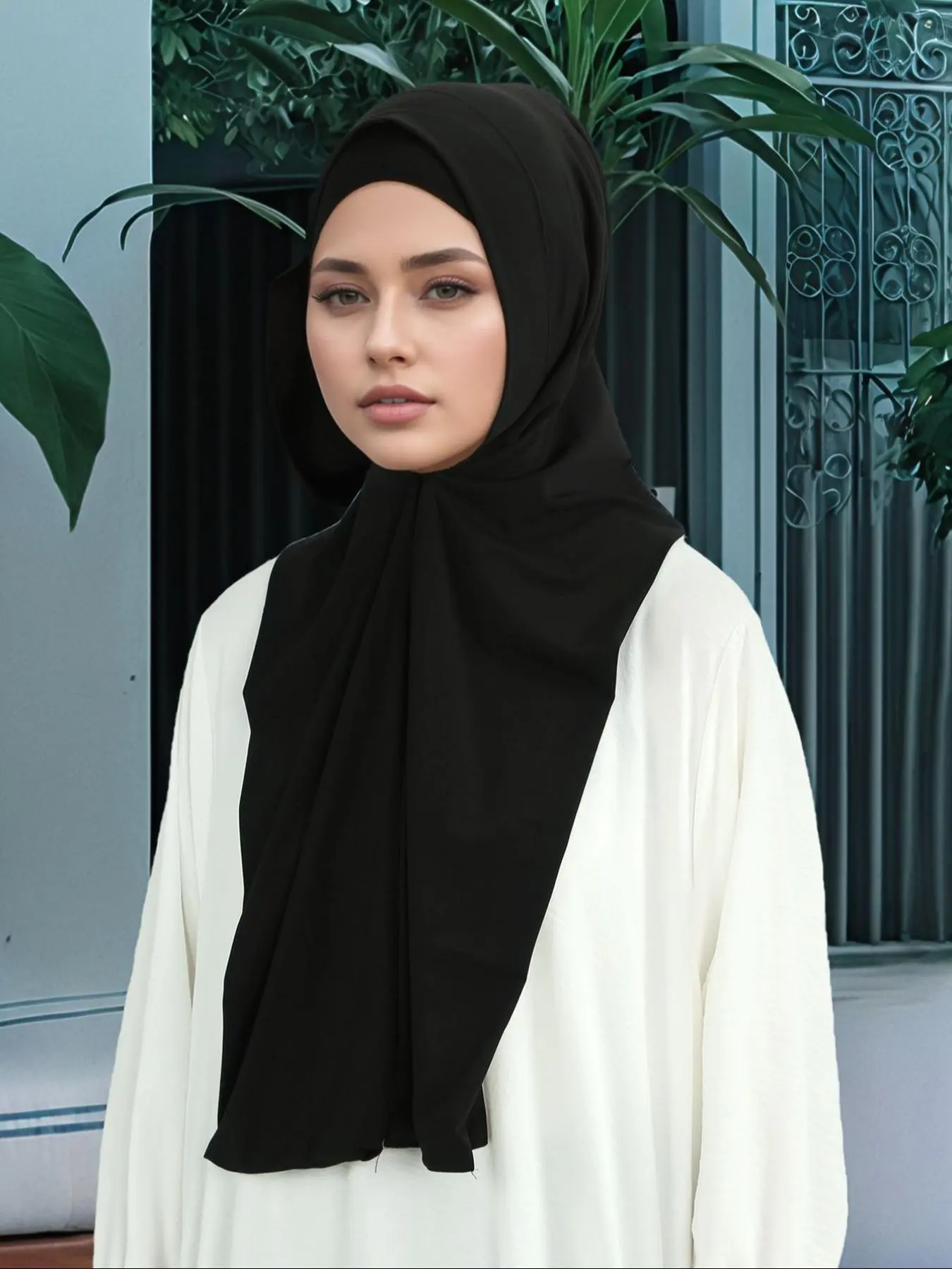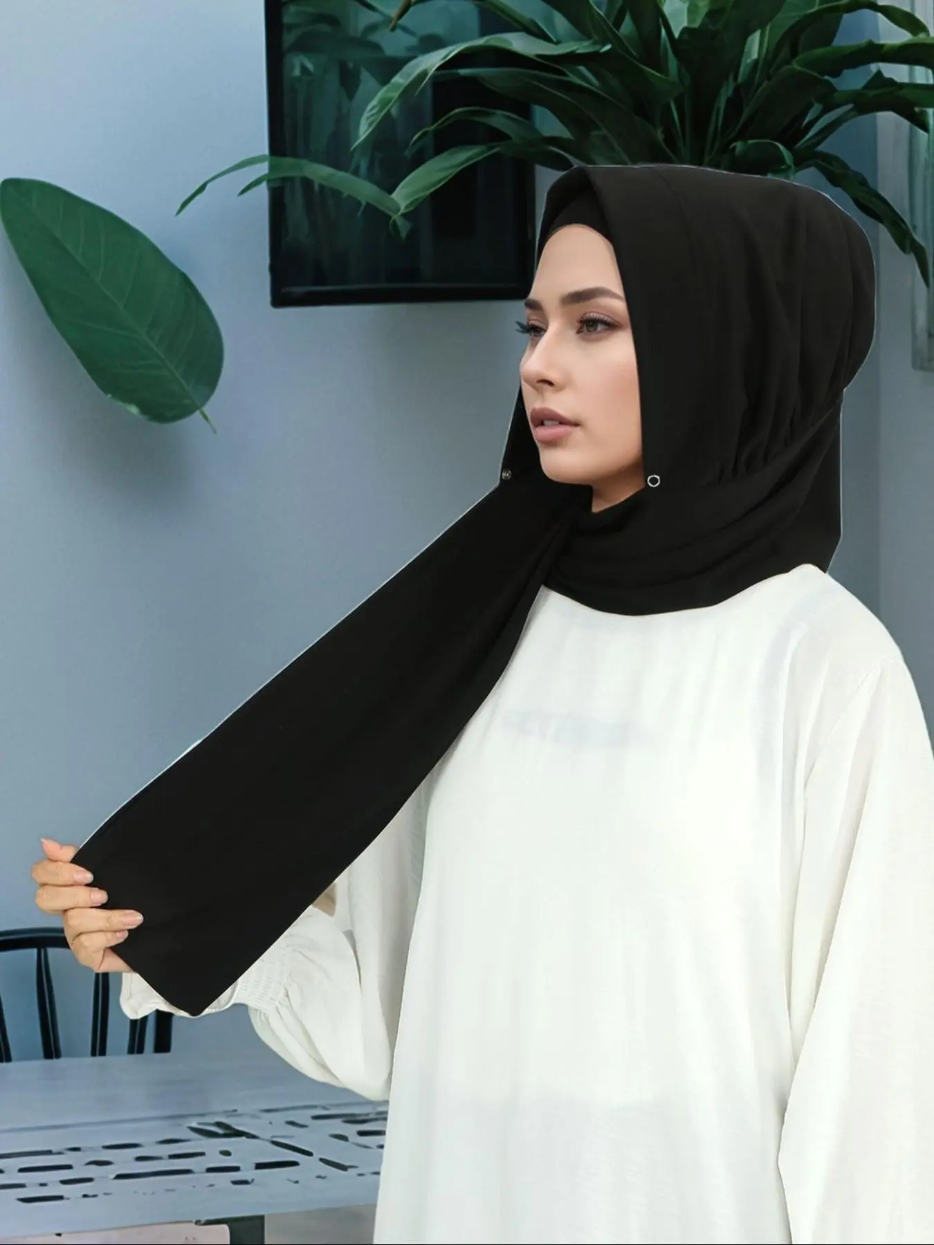 Instant Hijab for Women, Elegant Woven Fabric, Button Fastened Design, All Season Wearable, Slip Resistant Style