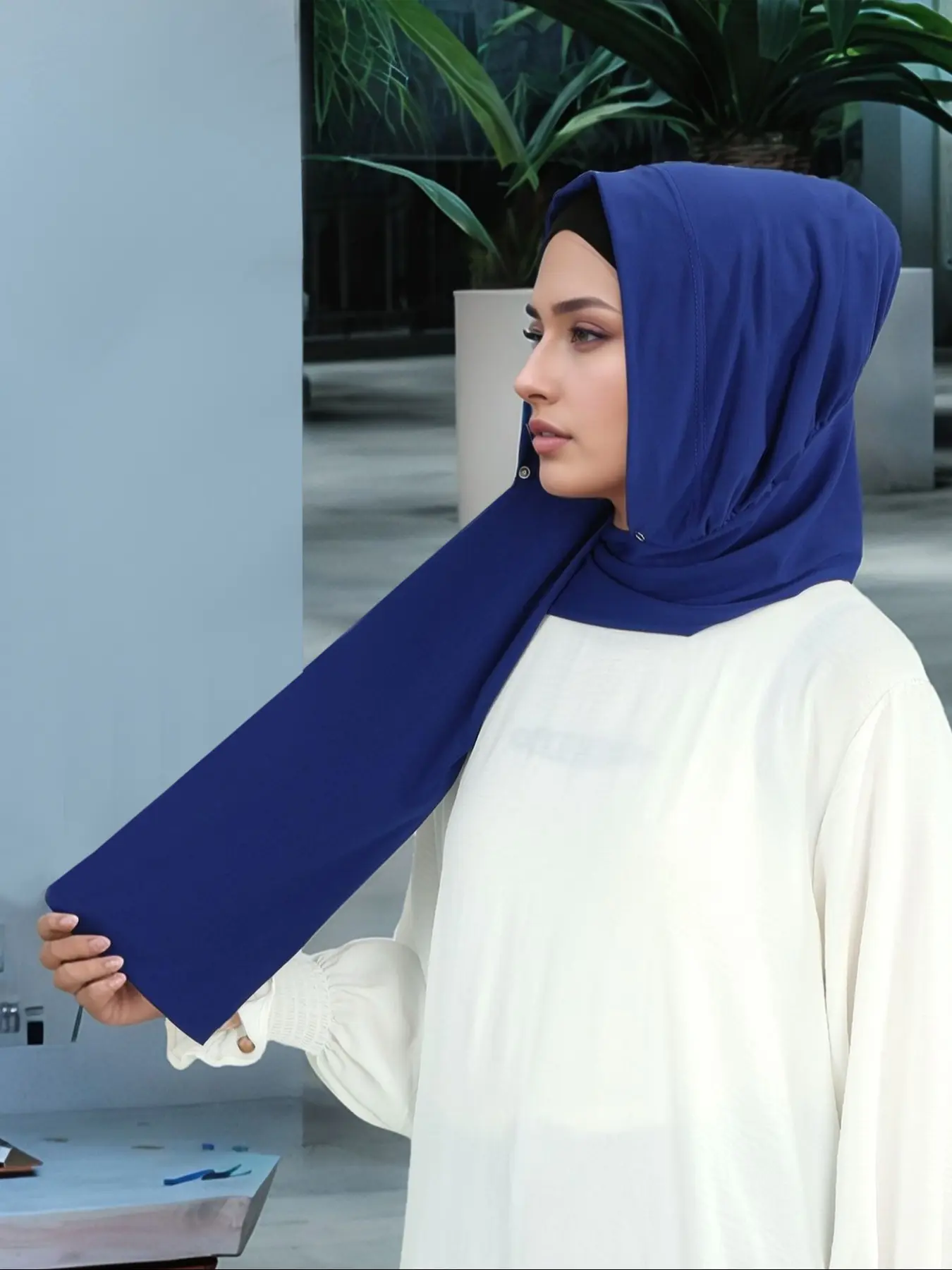 5. Instant Hijab for Women, Elegant Woven Fabric, Button Fastened Design, All Season Wearable, Slip Resistant Style