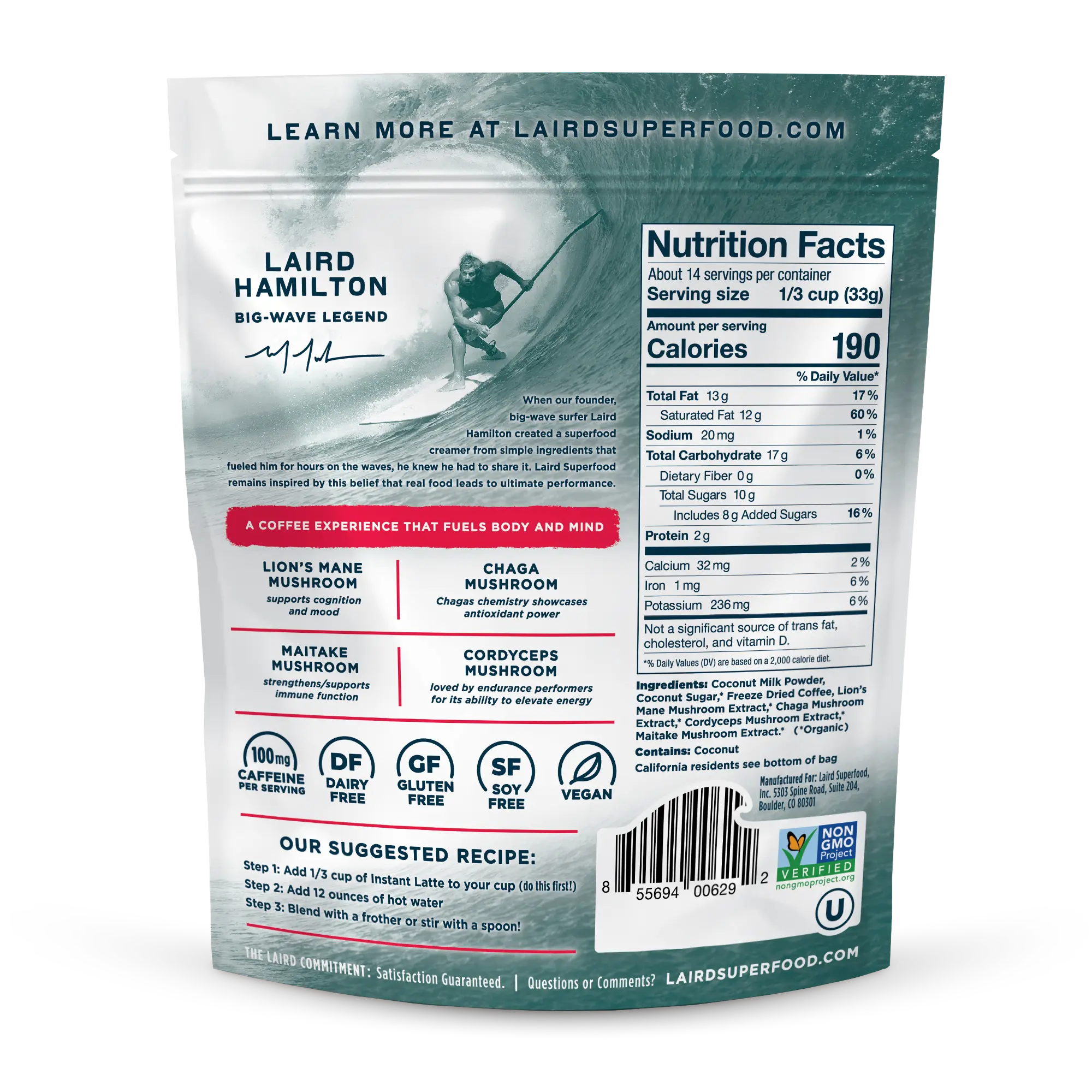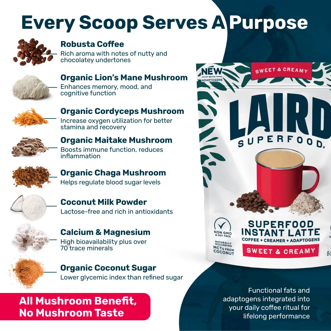 I went back to school at 38 years old. I have a wife and two young girls. I would work breakfast, lunch and dinner on Saturday and Sunday and go to work right after school Monday through Friday. I was putting in 80 hours a week for 18 months. The first few months were rough, I was living on coffee but I felt terrible. On a whim, after talking to a buddy about mushroom coffee I tried the Laird Superfood Instant Latte. After the first cup I had more energy than I had felt in months. I made my way through the first bag and I haven’t looked back. I felt energetic longer than on normal coffee and never experienced the crash. I could not have completed the last 18 months without this product, I would recommend it to anyone.