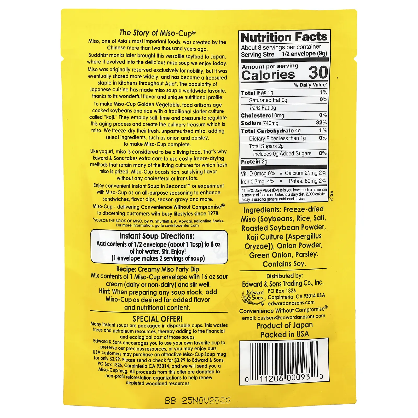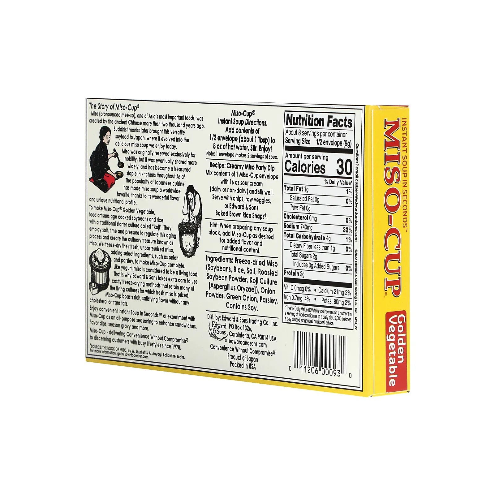 5. Edward & Sons Miso-Cup®, Instant Soup in Seconds™, Golden Vegetable , 4 Envelopes, 2.5 oz (72 g)