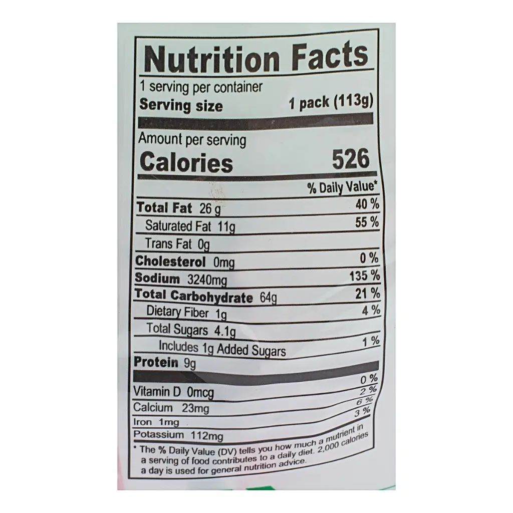 Seasoning Pack: Salt, Yeast Extract, Garlic PowderSugar, Hydrolyzed Soybean Protein, Ginger Powder,Chili Powder, Caramel, Black Pepper Powder, Discdium Inosinate, Disodium Guanylate, Silicon Dioxide.