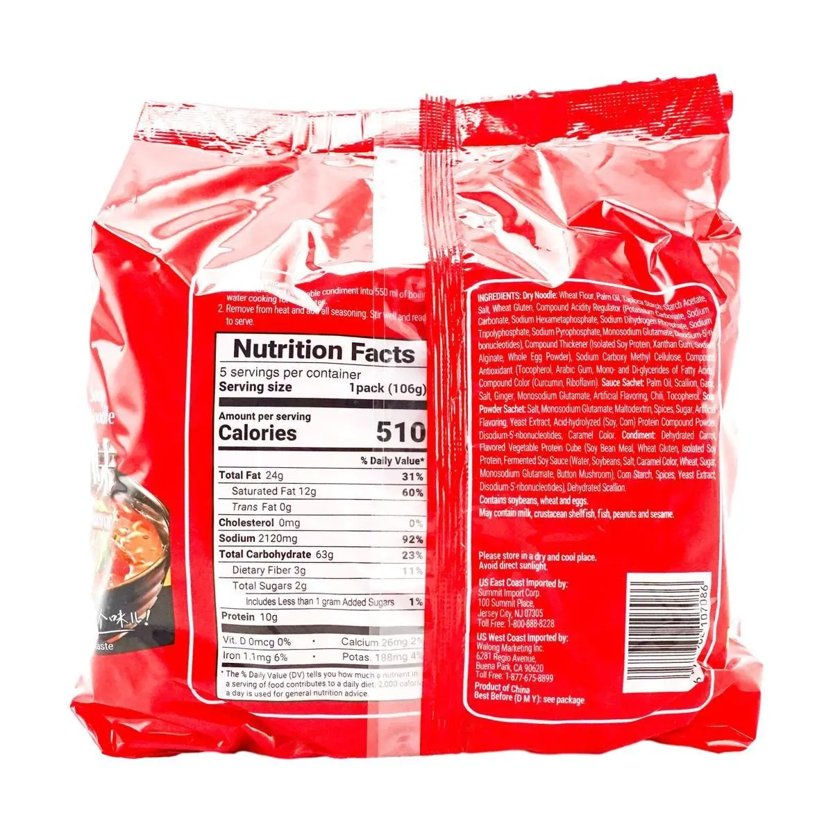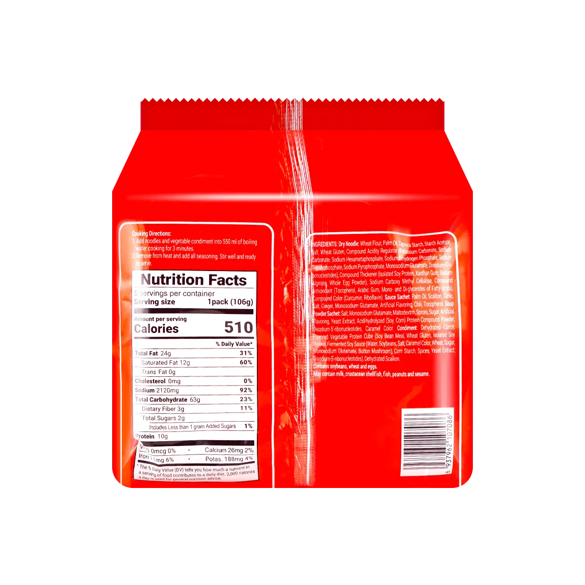 5. 5 Large Packs of Master Kong (Kang Shi Fu) Instant Noodles - Braised Beef Flavor, 106g x 5 Packs