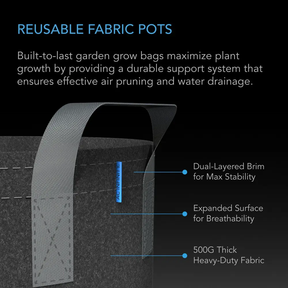 ·Includes two reusable 5-gallon fabric pots that improve plant growth by draining excess water & air-pruning roots.