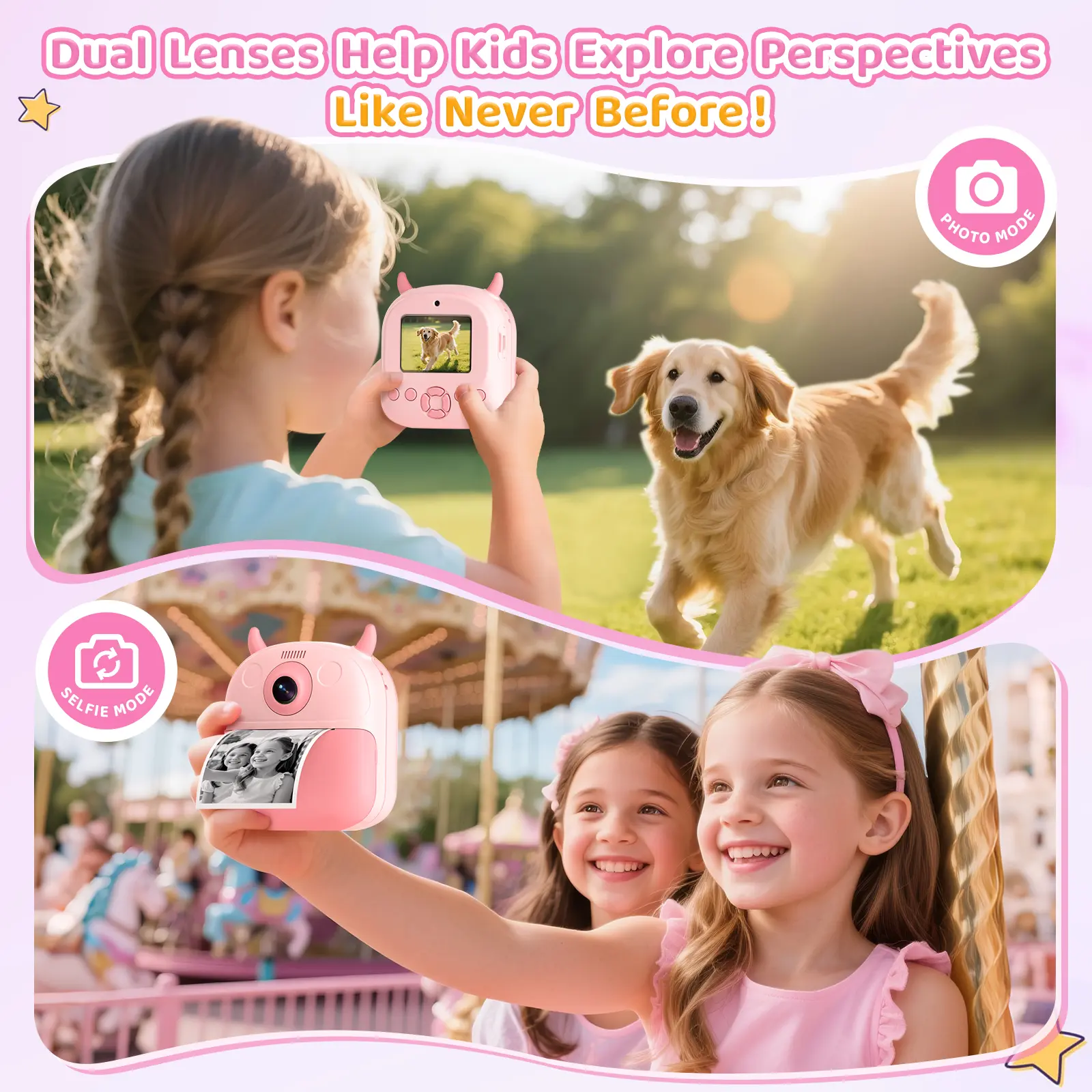 ·Child-Safe Design for Peace of Mind: Your child's safety is our priority. The camera is made from high-quality, soft-touch plastic with a shockproof shell that withstands drops. Our advanced thermal printing technology requires no ink, toner, or carbon powder, producing odor-free and non-toxic prints that are safe for sensitive skin. Let your children play and create in a completely non-toxic environment, supporting their healthy growth without any worries.