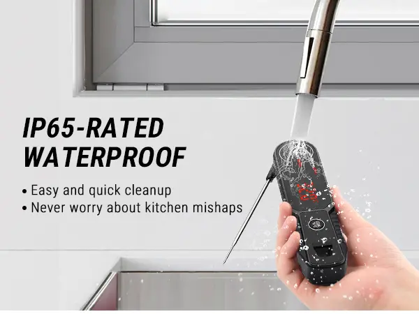 ·IP65-Rated Waterproof & Skidproof Grip: Quickly clean digital meat thermometer with probe under running water without worry; anti-slip grip & durable body helps prevent kitchen accidents