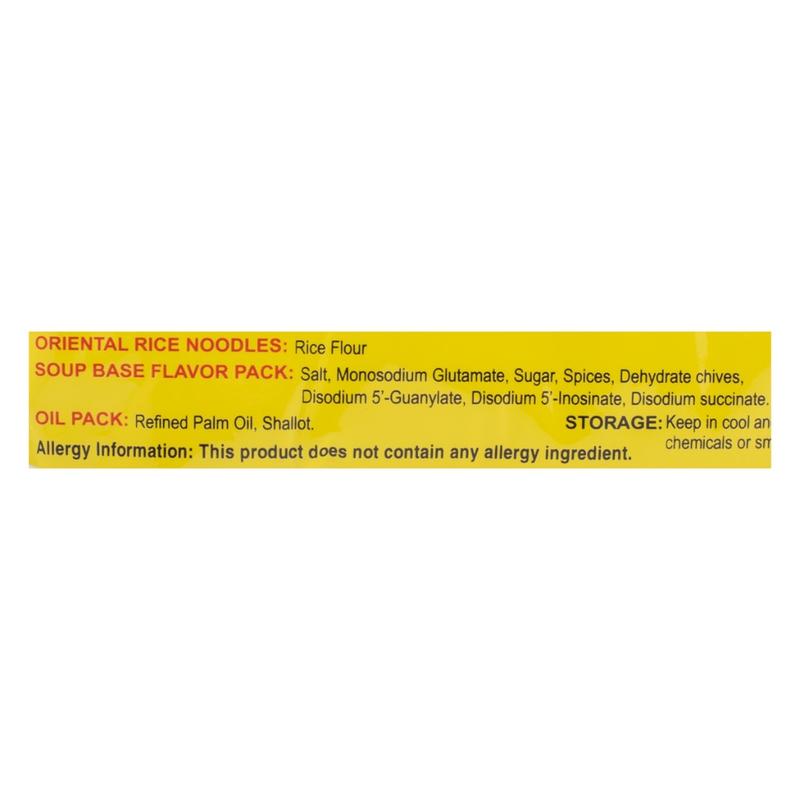 Orient Rice Noodles: Polished Rice Flour, Corn Starch, Wheat Flour, Salt, Monosodium Glutamate, Sugar.