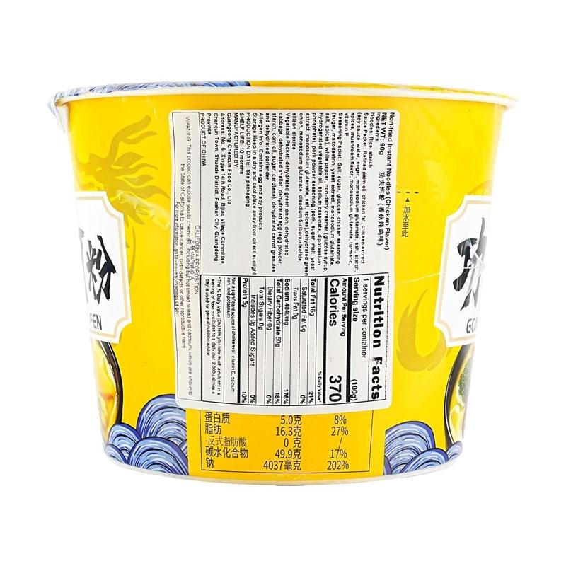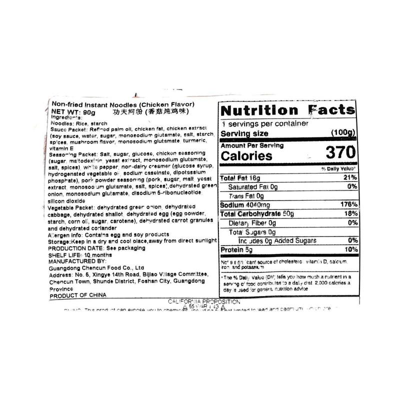 CHENCUNFEN Instant Rice Noodles Kung Fu Ho Fun Mushroom Stewed Chicken Flavor 90g Non-Fried for Late Night Snacks