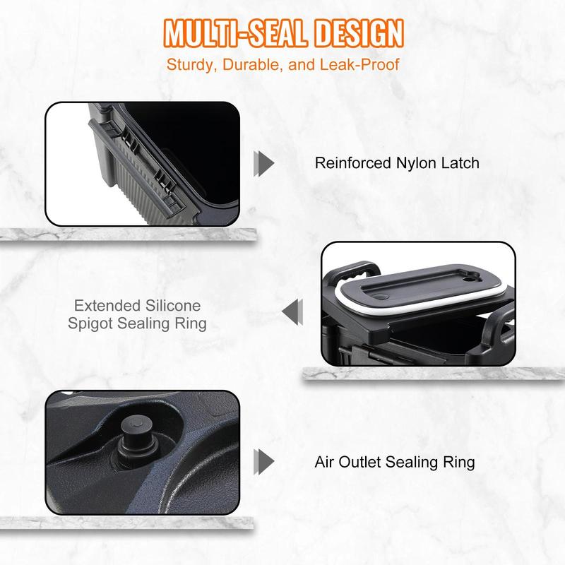 • Two-Stage Spigot: Our drip-proof two-stage spigot allows for precise control of the beverage flow, and it even features an effortless press-to-stay-open function. Composed of food-grade PP material, our insulated drink dispenser is built for longevity, and its internal springs and washers avoid leaks. Say goodbye to concerns about leaks or deformation.