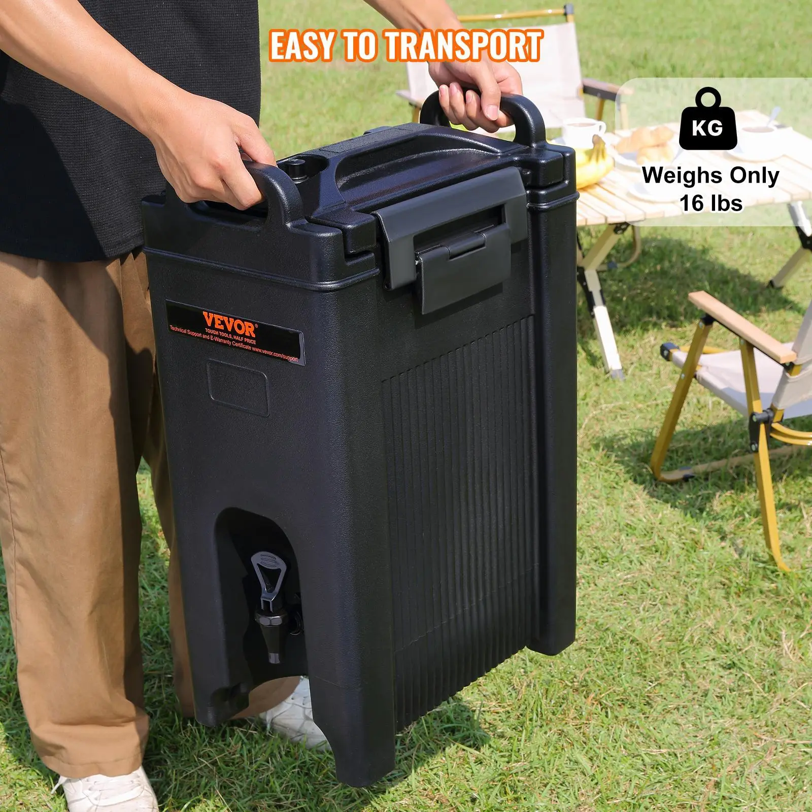 • Hassle-Free Mobility: Our thermal beverage dispenser is made from lightweight materials and weighs just 16 lbs (7.26 kg). The two ergonomically designed integrated handles align perfectly with your fingers, making it a breeze for you to lift and carry anywhere you want.