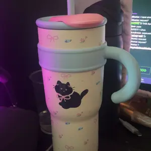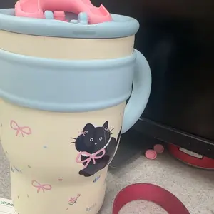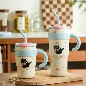 Cute Cat Insulated Straw Cup Stylish Large-Capacity Water Bottle for Hot and Cold Drinks Stainless Steel Bottled Tumbler Portable
