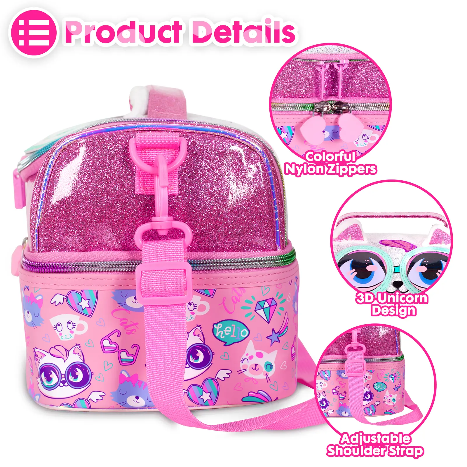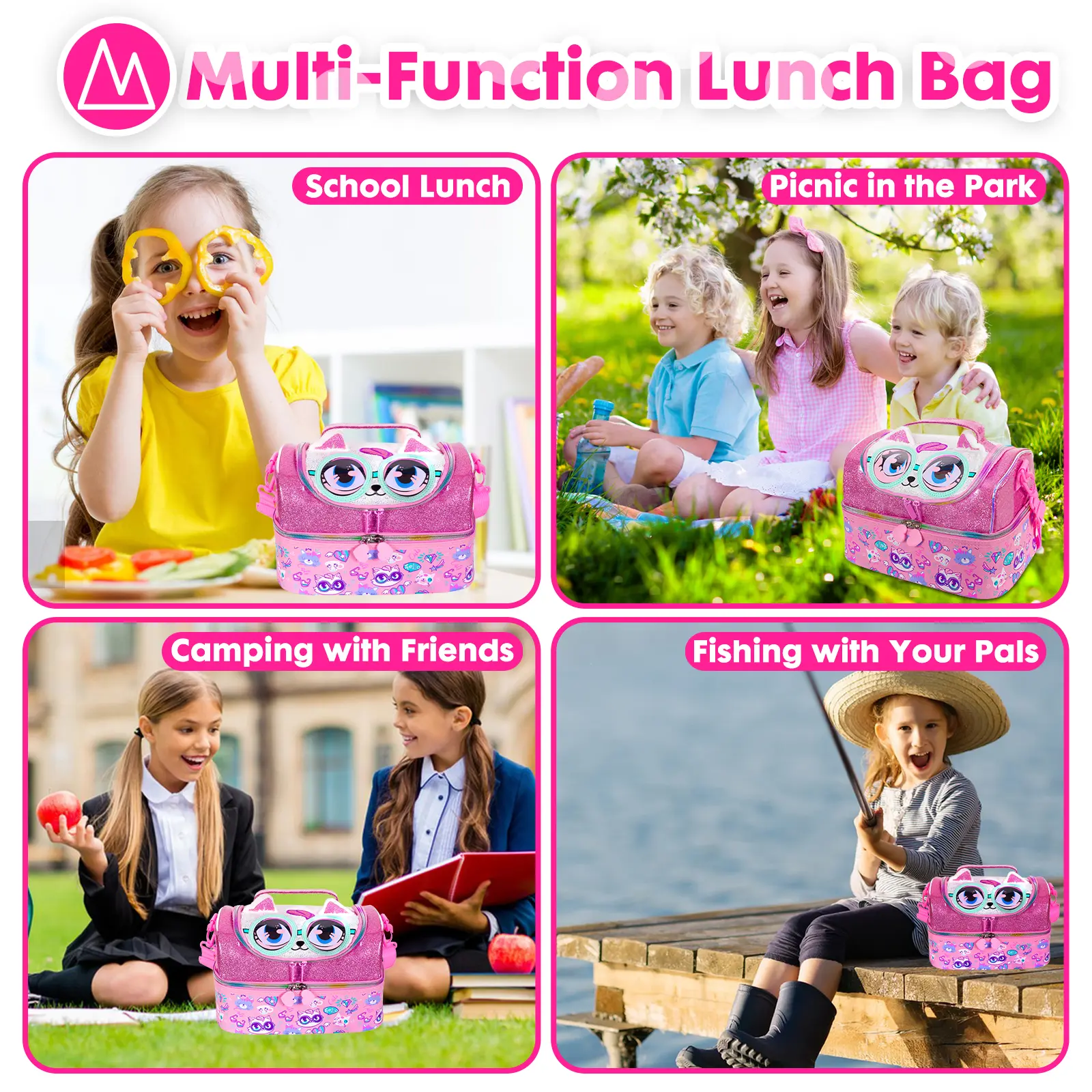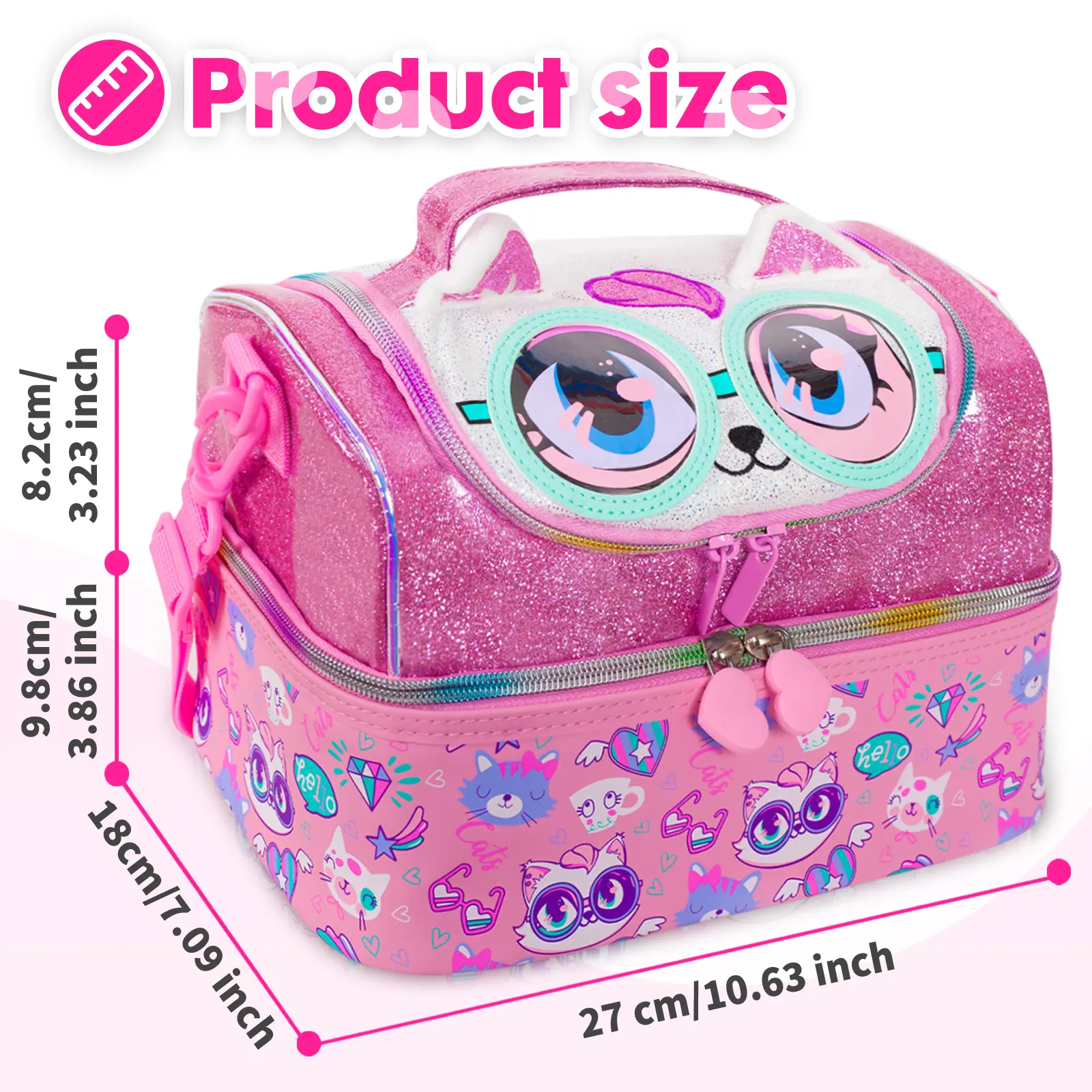 ·Creative 3D Cartoon Design - 3D Cat Lunch Bag, paints every child's colorful dream, adding more interest for kids, which make your child love to take it out and let your children enjoy lunch happily. Great gift for kids who back to school or school office supplies.