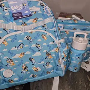 Great quality lunch bag. It's very spacious. The main compartment has elastic to hold a mini water bottle. There's a full size pocket on the inside and front pocket as well! My daughter loves the Bluey print!