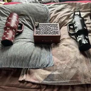 I’ve wanted this baby puppy bottle so bad for what seemed forever but not for myself but for my sam who passed away on 7/12/2025 it lays as a memorial on the one side his urn and glowie paws 🐾 lays on the other side I showed the baby puppy and glowie paws separately then my sams urn and together