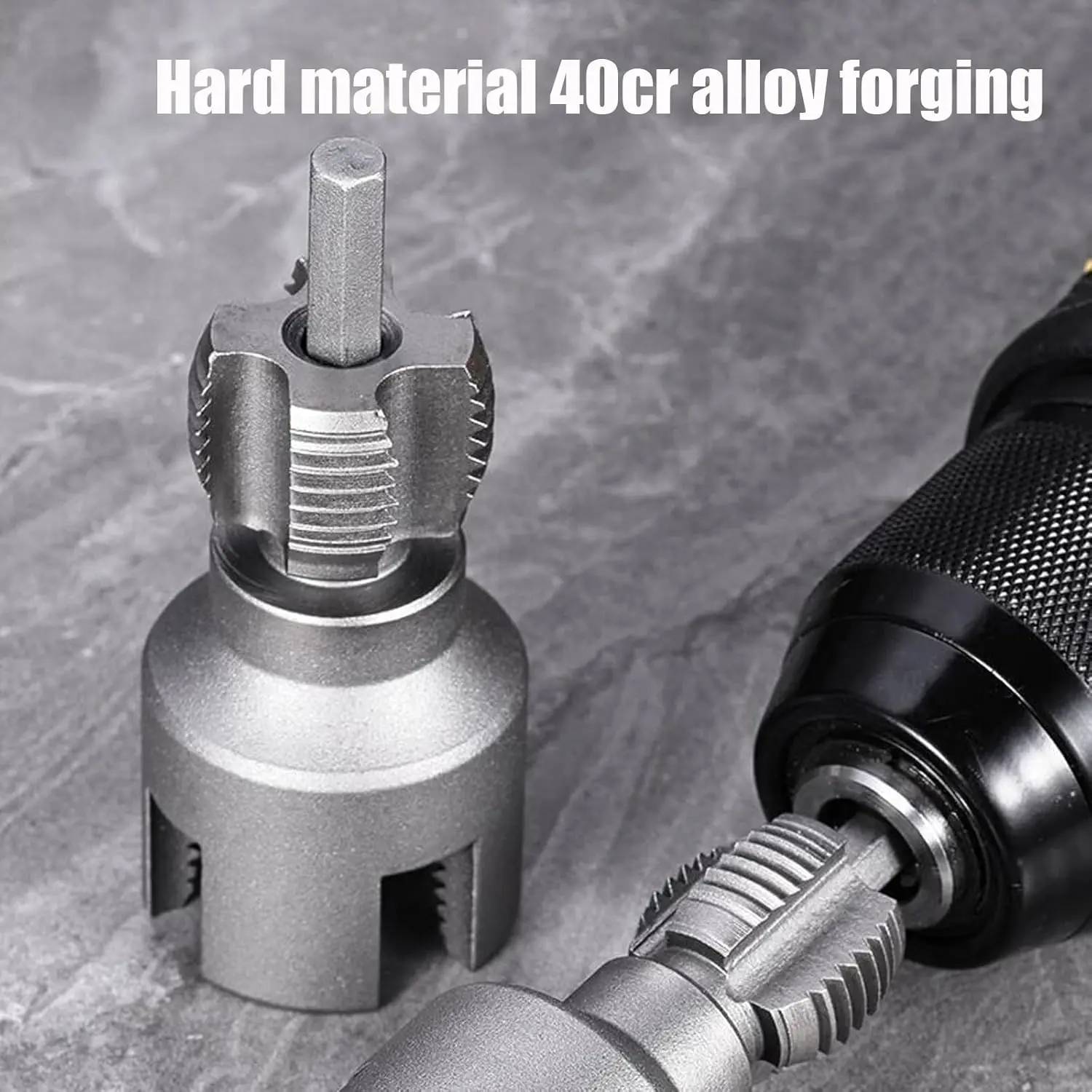 Integrated Internal & External Pipe Threading Tool, Pipe Thread Cutting Tool, Electric Drill Compatible PVC Pipe Threader Kit, 1/2" (DN15) 3/4" (DN20) Pipe Size (1/2" + 3/4")