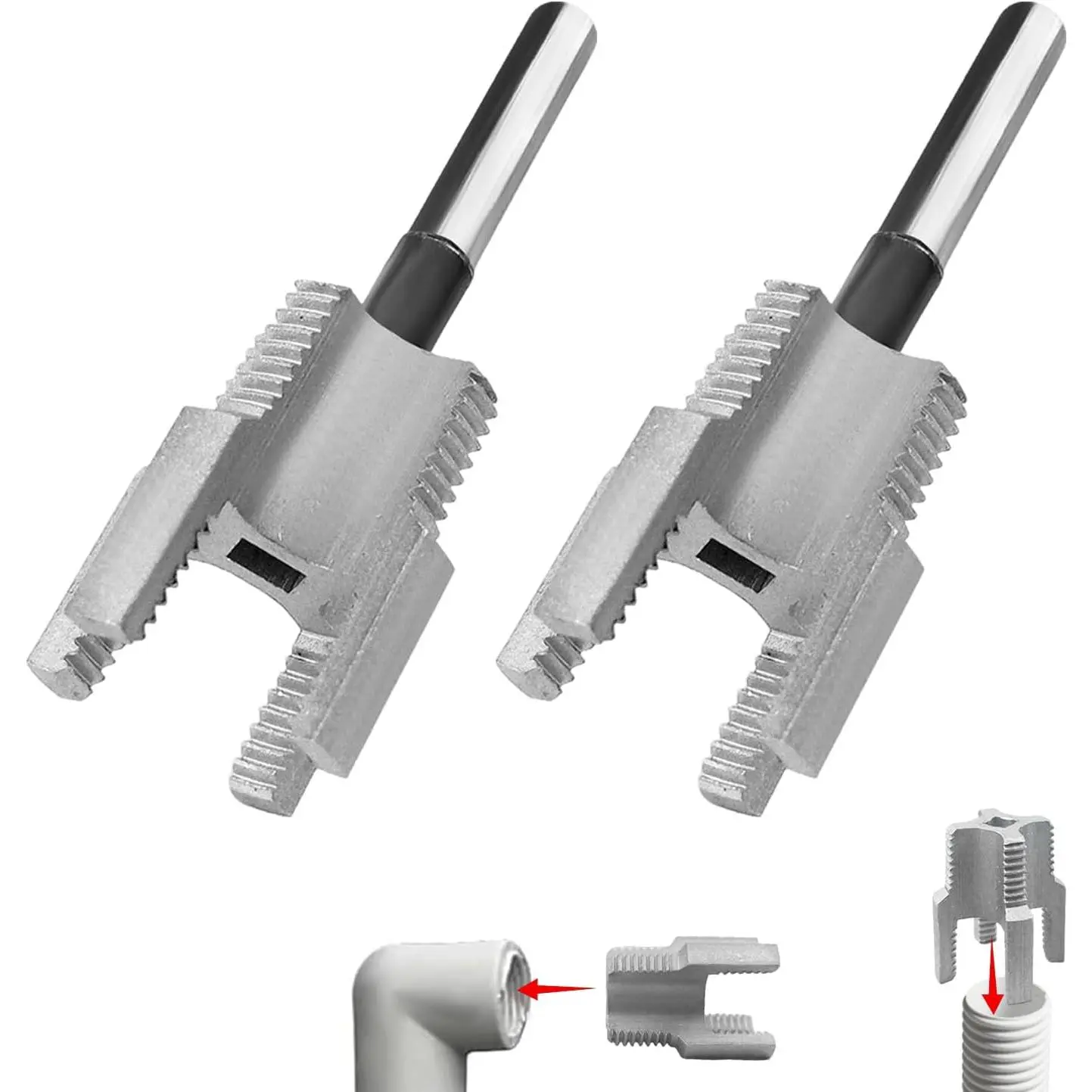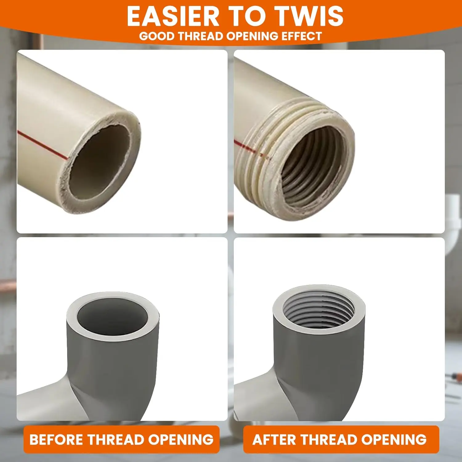Internal & External Compatibility: This integrated threading tool handles both internal and external threads on PVC, PPR, plastic, and MPP pipes. Ideal for fast, efficient threading or repair of pipe ends in plumbing or maintenance work.Two Dual-Function Threading Heads – 1/2'' & 3/4'' Sizes: Includes two tools: one for 1/2" threads and one for 3/4", both with internal and external threading. Covers the most common sizes used in household and commercial pipe systems.Electric Drill Compatible for Easy Operation: Designed to connect to standard electric drills for fast, effortless threading. Great for tight spaces or high-volume jobs, ideal for both professionals and DIYers.High-Quality Materials: Made from heavy-duty steel with a corrosion-resistant coating, this threading set is built for durability and long-term use, even in tough job site conditions.Compact & Portable – Ready for On-the-Go Jobs: Lightweight and compact design fits easily in any toolbox or work bag. Perfect for mobile jobs, ladder work, or tight areas where space and speed matter.