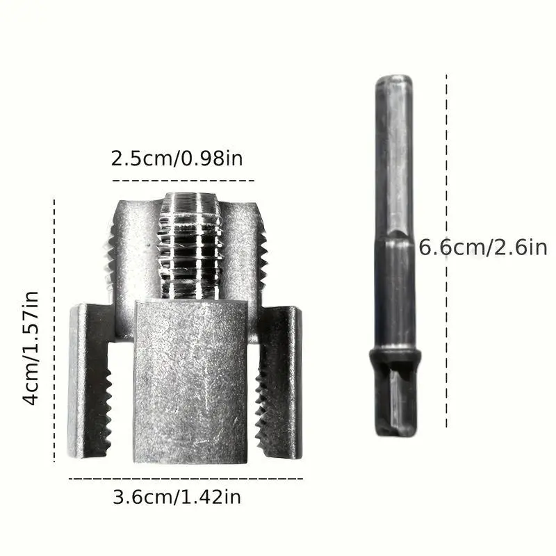 The Integrated Internal & External Pipe Threading Tool for flawless internal and external threading on plastic pipes, every single time.Specifications:Type: Pipe Thread Cutting ToolCompatible Sizes: 1/2", ¾"Material: 40Cr Alloy Steel Powder MetallurgyCompatibility: Electric drill compatibleApplicable Pipe Types: PVC, PPR, Plastic, MPPApplication: Internal & external threading, pipe sizes rethreadingSIZES:Nominal Diameter Inch Size PPR Pipe Outer Diameter Steel Pipe Outer Diameter (BSPT) Copper Pipe Outer DiameterDN15 1/2" 20 mm 21.3 mm ≈15.88 mmDN20 3/4" 25 mm 26.9 mm ≈22.22 mmWarm Notes:1. Please Allow Slight Size Errors Due to Manual Measurement.2. Due to Differences Between Monitor Displays, Actual Color May Vary Slightly from Image.Thanks for Your Understanding.3. If You Have Any Questions, Please Get in Touch with Us at Any Time, We Will Provide You with Best Solution.
