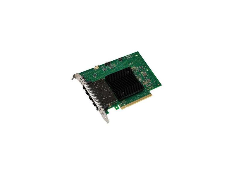 ·Intel® Ethernet 800 Series improves application efficiency and network performance with innovative and versatile capabilities that optimize high-performance server workloads such as NFV, storage, HPC-AI, and hybrid cloud. With its high 10/25GbE port density, the E810-XXVDA4 adapter is designed to optimize high-performance system workloads for Cloud and Communications.Performance optimizations and port density for Cloud and Storage deployments Four 25GbE SFP28 ports deliver multiple high- speed connections Application Device Queues (ADQ) provides dedicated traffic queues to reduce latency and increase application throughput Dynamic Device Personalization enables protocol- specific traffic acceleration to improve packet processing efficiency and reduce CPU overhead iWARP and RoCEv2 support provides high-speed, low-latency, high-throughput connectivity for Cloud storage targetsAccelerated packet processing and PCIe slot savings for Communications workloads Four 25GbE SFP28 ports deliver greater bandwidth in slot-constrained RAN systems Enhanced Data Plane Development Kit (DPDK) support increases packet processing speeds Dynamic Device Personalization enables protocol- specific traffic acceleration and reduces CPU overhead for emerging high-bandwidth workloads IEEE 1588 PTP v2 Precision Time Protocol support enables precise clock synchronization across 5GFlexible ConfigurationsIntel® Ethernet Optics, and specification-compliant Active Optical Cables and Direct Attach Cables, can support multiple configurations.