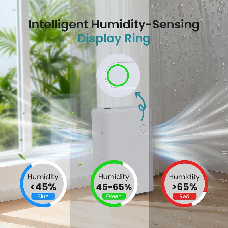 ·Intelligent Control: After you set your desired humidity, the dehumidifier will run intelligently. Humidity Auto Control-Simply adjust to your desire humidity, it will work smartly, when it reached its designated humidity, it will automatically stop working and then automatically restart to dehumidify when the humidity above target is sensed. Automatic Shut Off/On-Shuts off automatically when the bucket is full and switch it on again after the bucket emptied. Power Outage Automatic Restart