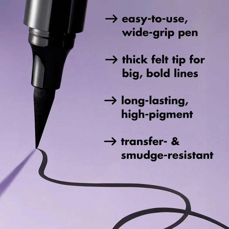 What it is: An extra-wide, black liquid eyeliner pen with a thick felt tip that effortlessly creates richly pigmented, bold lines and graphic eye looks.
