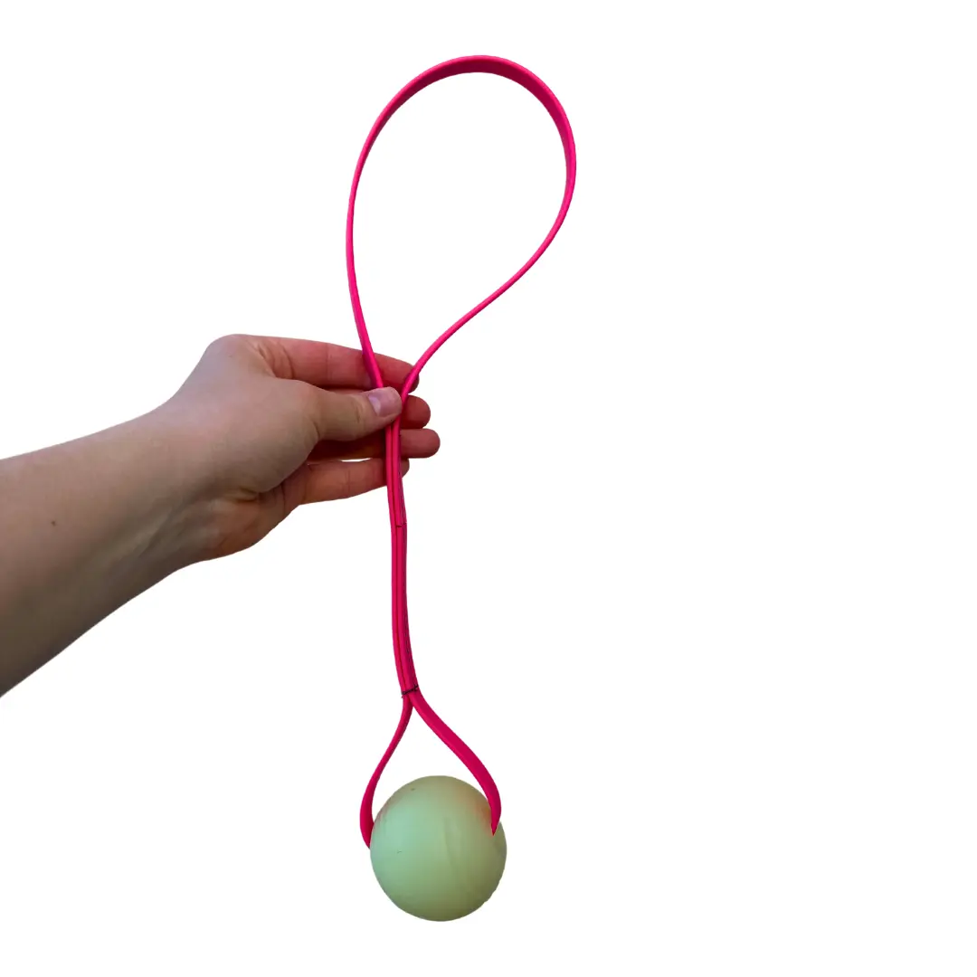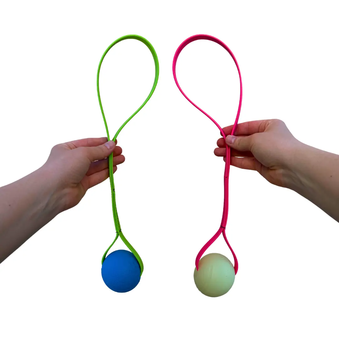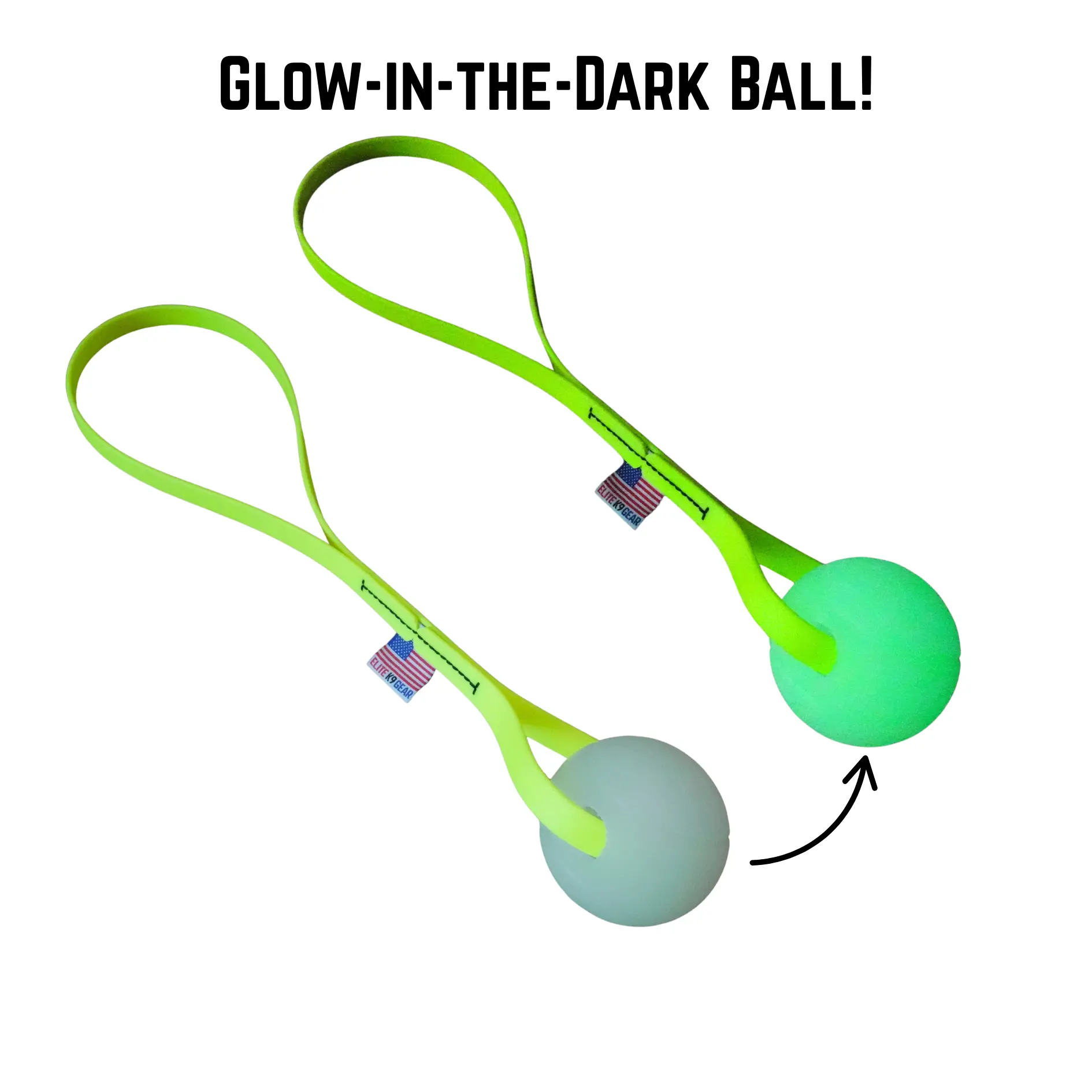 This ball tug 2-pack is made with a durable BioThane loop handle so you can hang on to the end while playing tug with your furry friend. You can also use the loop end to throw the ball a very long distance. Our ball and BioThane combination is designed to be a fun interactive toy for you and your dog**. Choose from our classic ball or a glow in the dark version! Both balls are hollow walled.