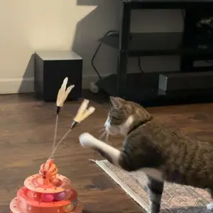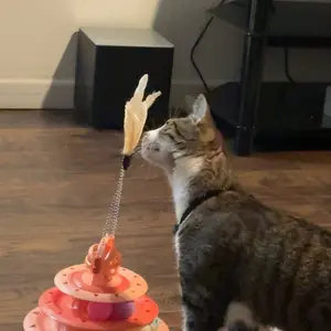 Este juguete es súper divertido: las pelotitas giran por los niveles y las plumas lo vuelven loco. Es resistente, no se vuelca y lo mantiene activo y entretenido todo el día. ¡Totalmente recomendado! 🐾💙