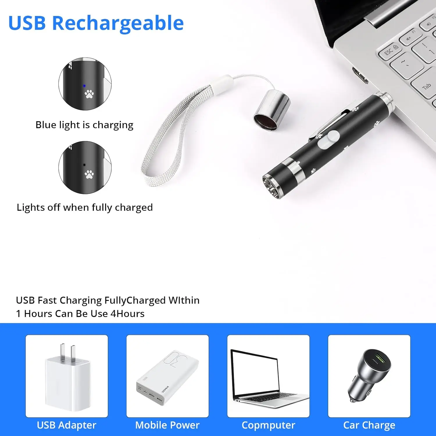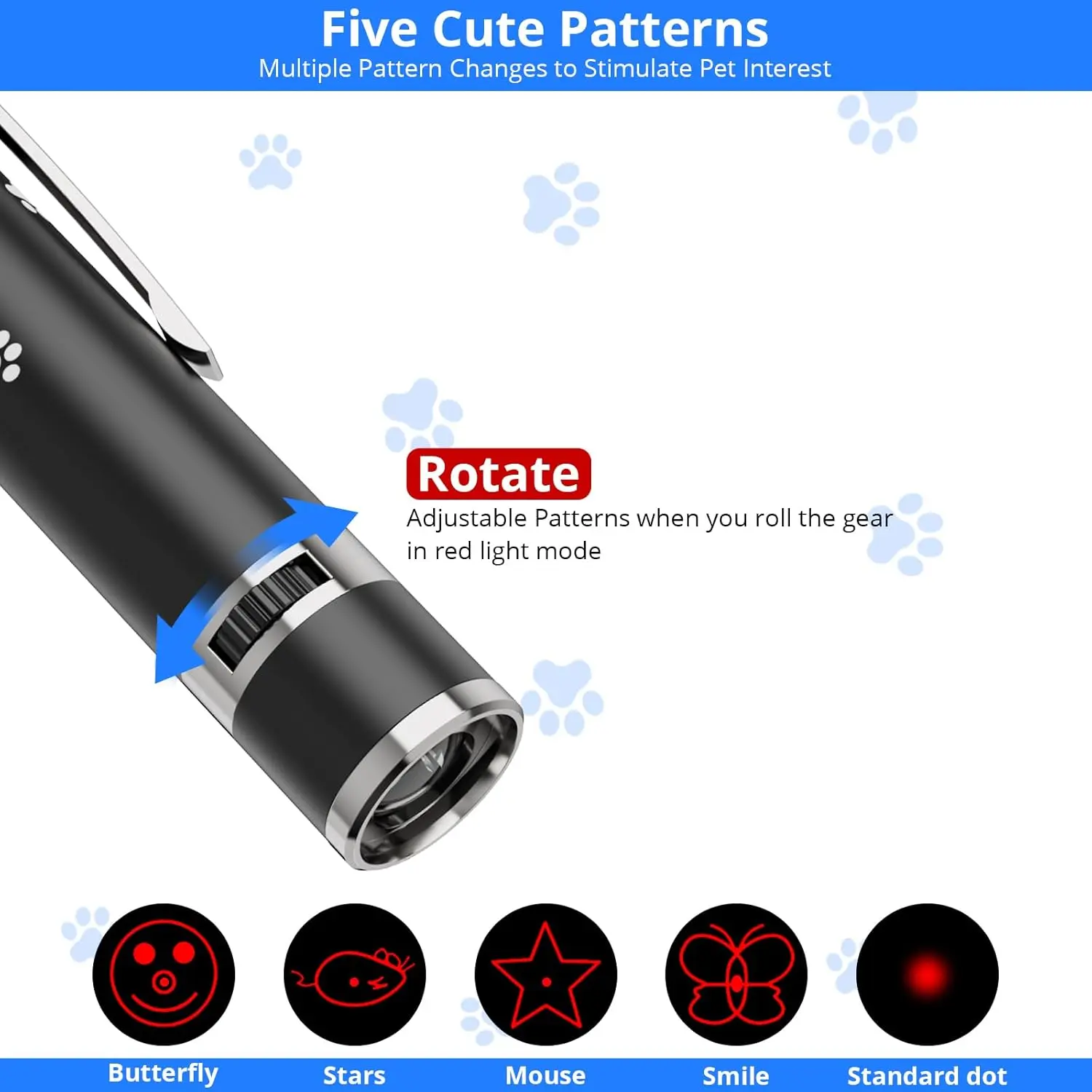 【Versatile Functionality】This light is more than just a pet accessory. It doubles as a presentation pointer with a bright beam for clear visibility. Easily activate it with a single push—no need to hold the button continuously. It also features a glow-in-the-dark light mode and a purple mode for detecting .