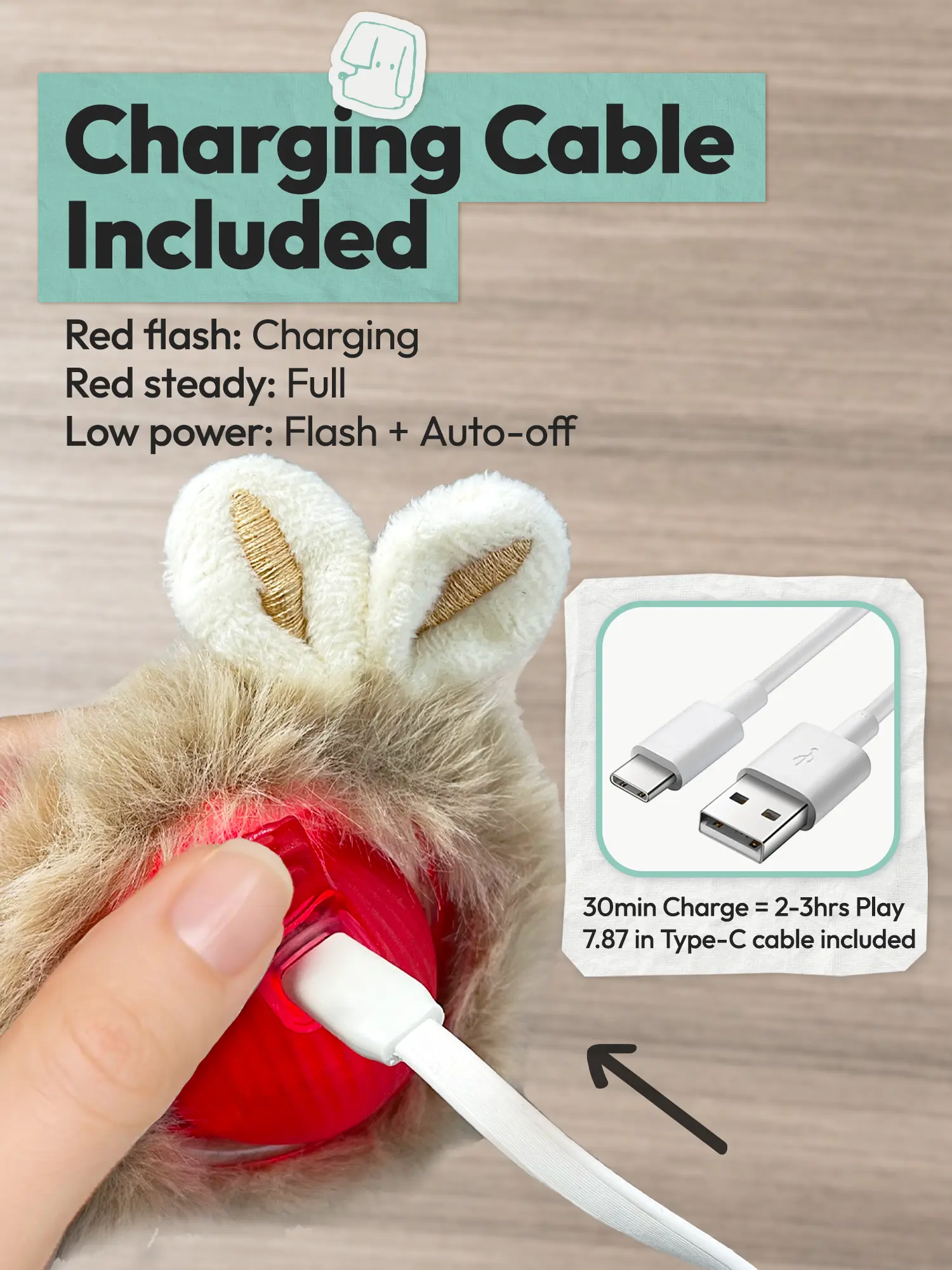 ·【Smart Standby & Rechargeable Design】After 5 minutes of play, the cat toys for indoor cats automatically enter standby mode to conserve battery. Simply touch the ball to reactivate it. If unused for 30 minutes, it shuts off on its own. Plus, with USB charging (5V, 1A), you don’t need to worry about changing batteries, making it super convenient.