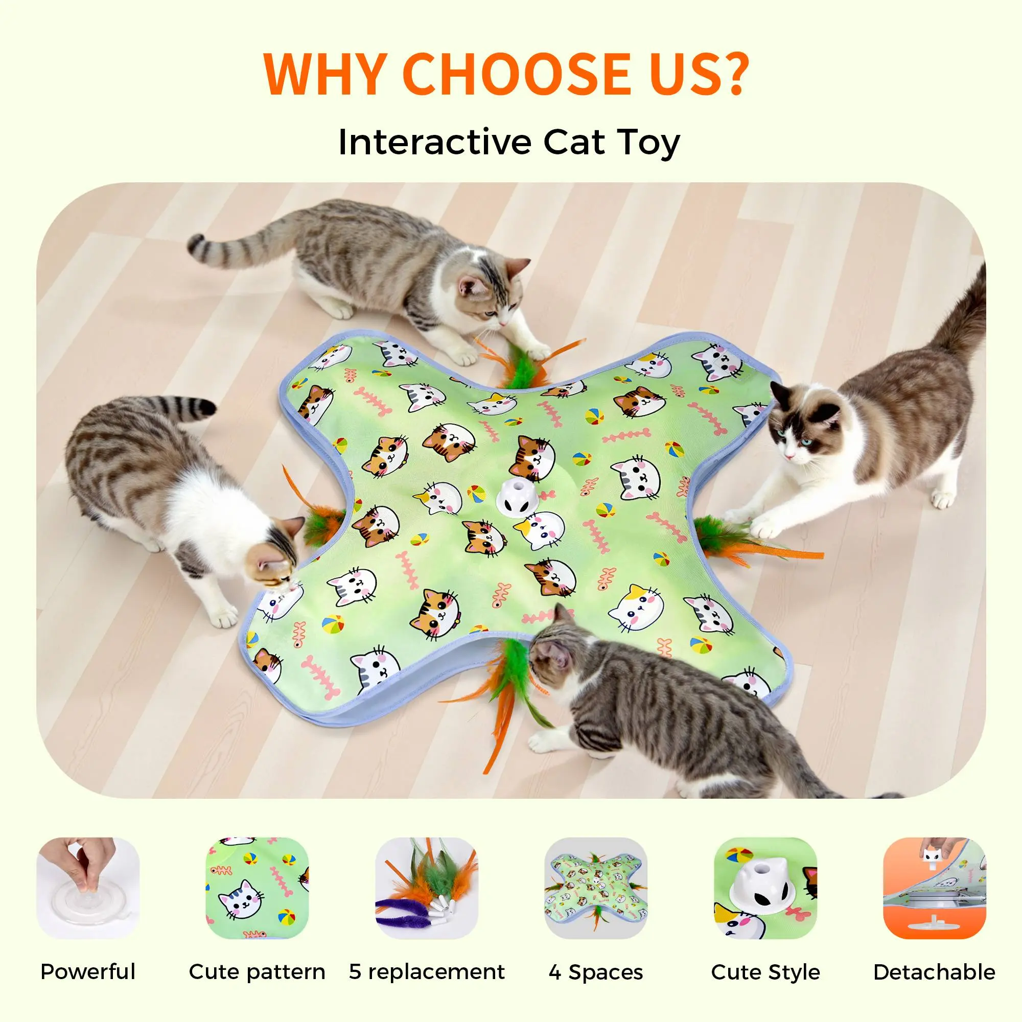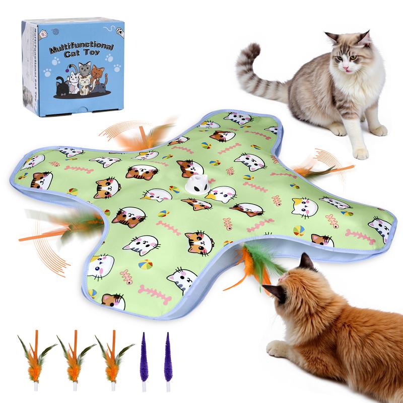 ·Durable & Safe Design: The thickened, double-padded mat ensures durability during enthusiastic play, while the easily replaceable feather wand adds to the toy’s longevity. This motorized entertainment buster offers endless chase opportunities for your kitty, making it a must-have for households with high-energy or easily bored cats.