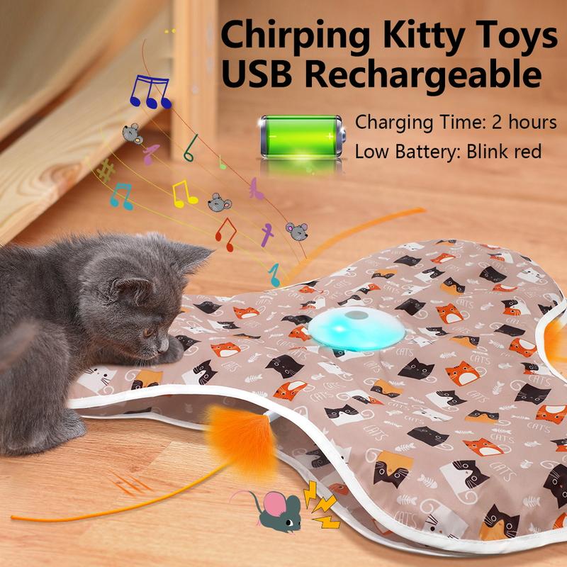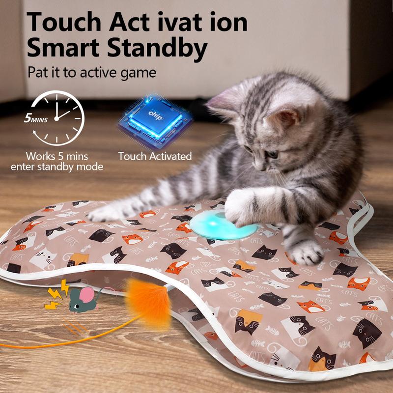 • Automatic Cat Toy: This interactive cat toy includes a real mouse squeaky and a moving feather wand. It hides in an irregular cloth cover, disappearing and reappearing to start a hide-and-seek game. Cats are stimulated to chase the mouse, driving them crazy with excitement.