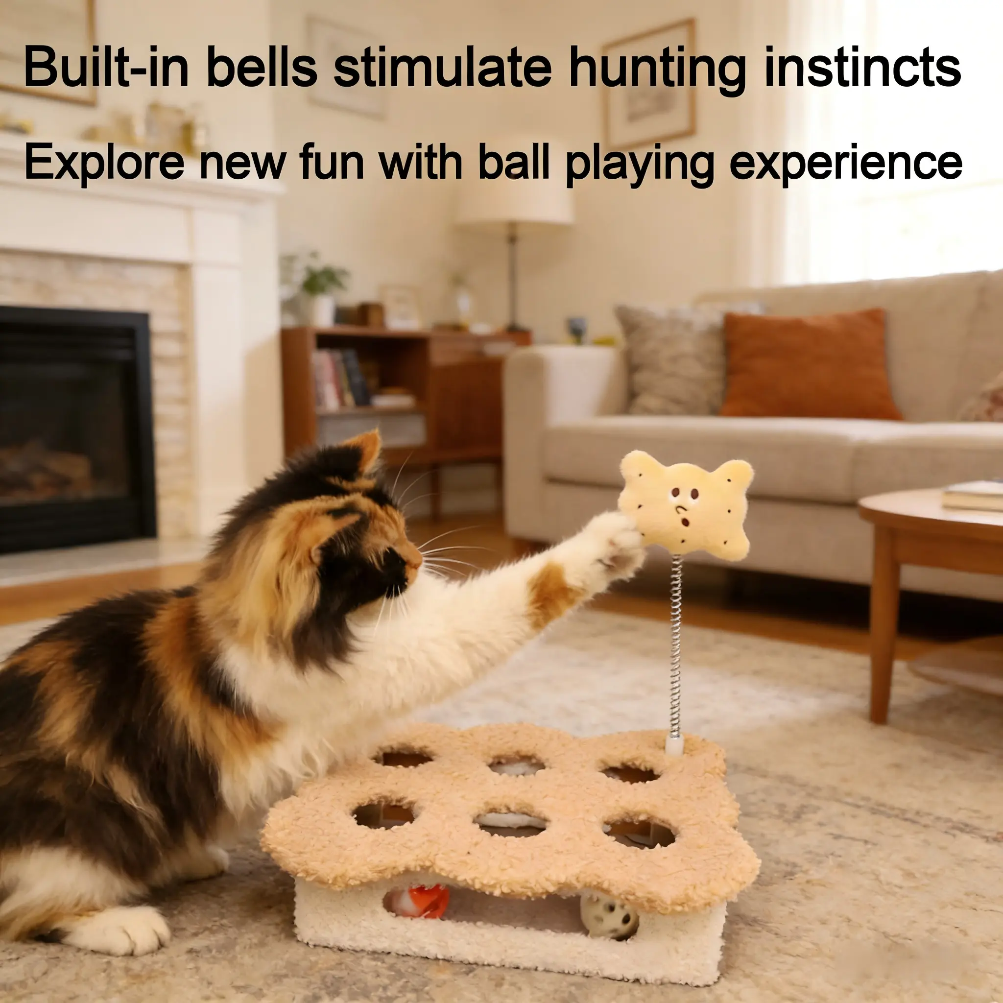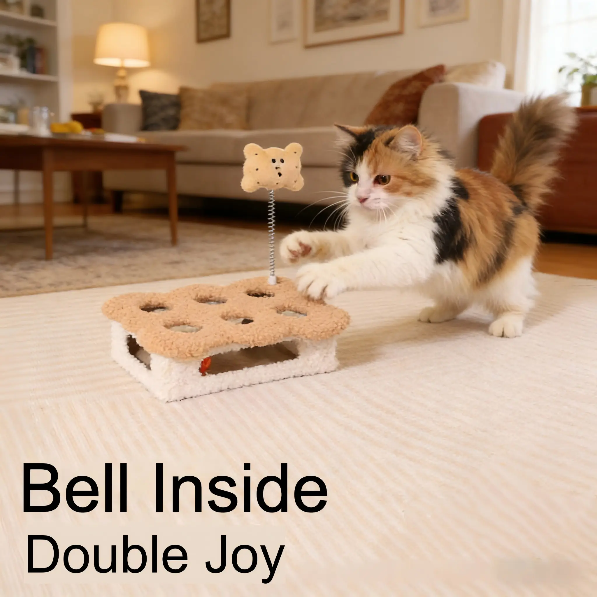 Interactive Cookie-Shaped Cat Toy Spring Plush Puzzle Box for Mental Stimulation Durable Soft Material Prevents Destructive Behavior Satisfies Hunting Instincts