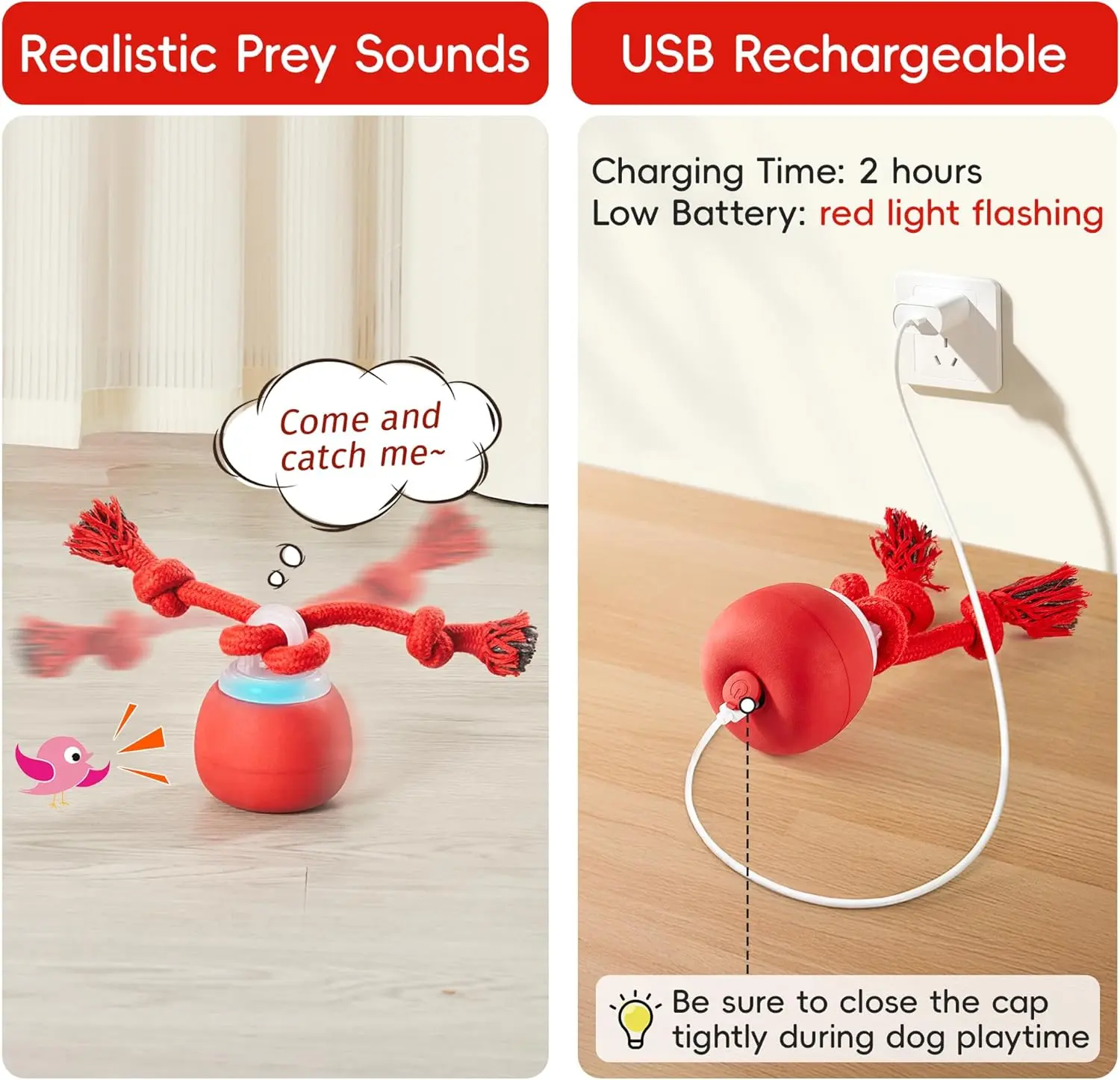 My dogs were immediately curious about this toy. The movement keeps them engaged, and it’s great for interactive play. It’s a fun way to keep them entertained, especially on days when we’re indoors