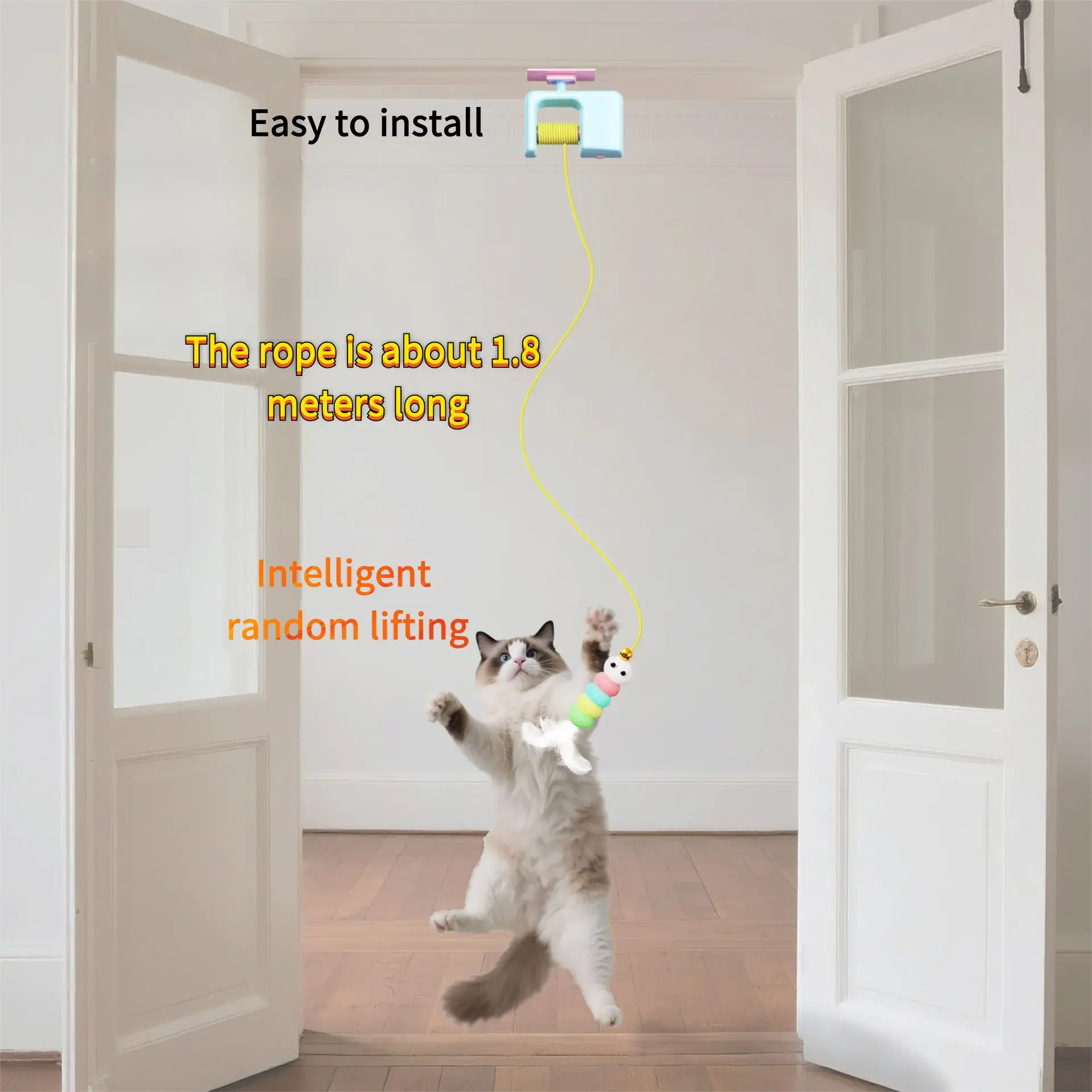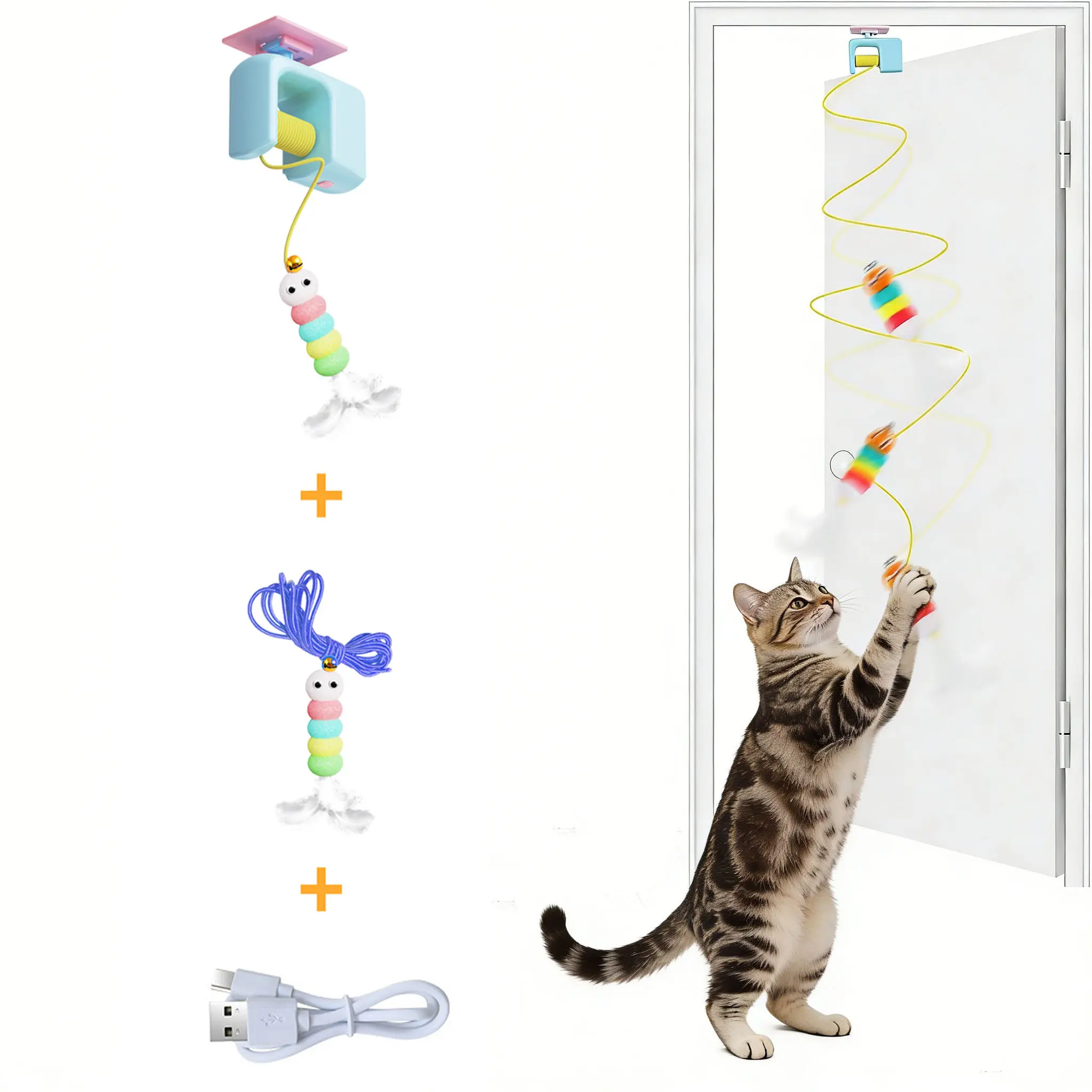 Interactive Electric Cat Teaser, USB Rechargeable Cat Teaser for Indoor Cats, Irregular Jumping, Stimulates Physical and Mental Vitality, Durable Safe Hanging Toy for Bored Kittens Adult Multi Cat Households