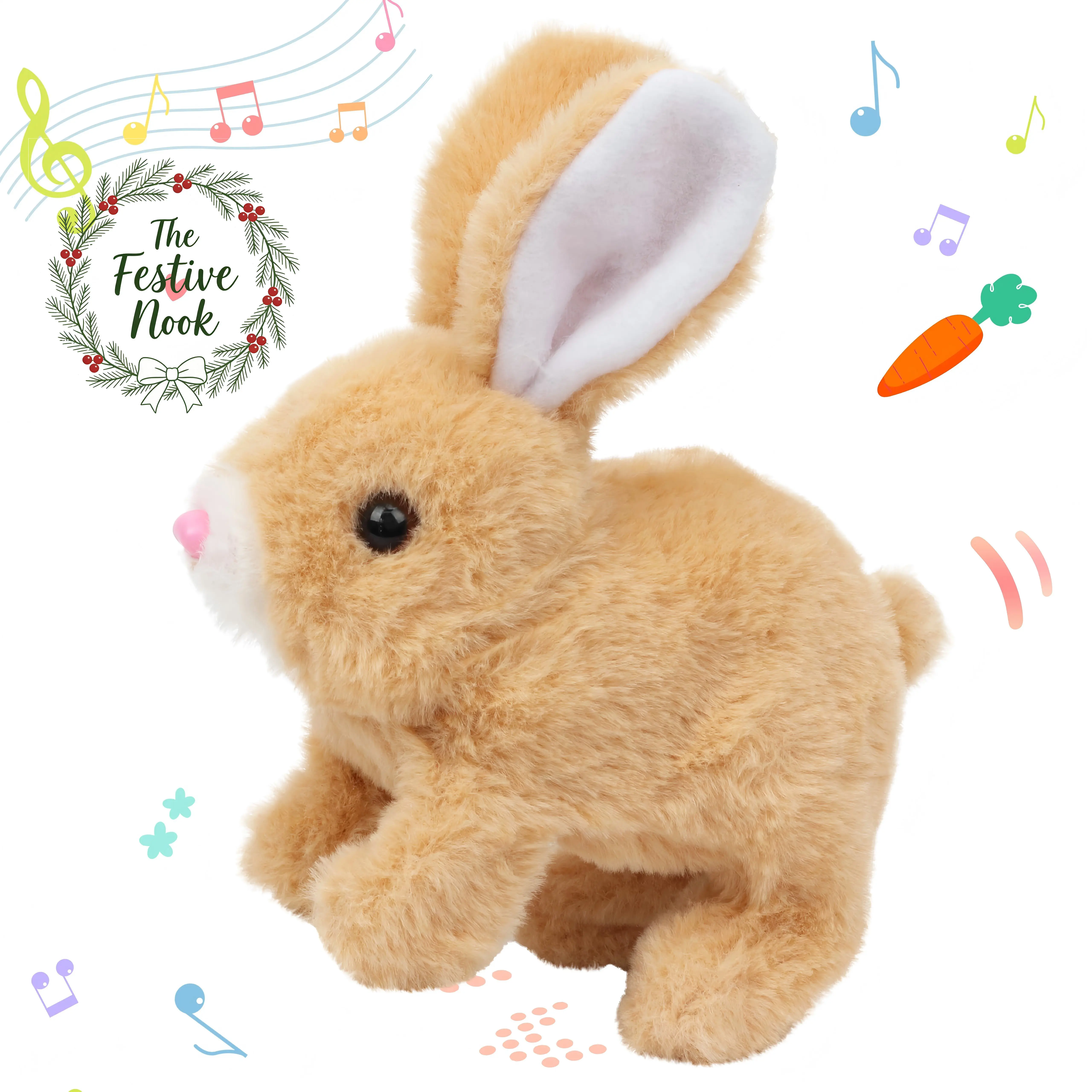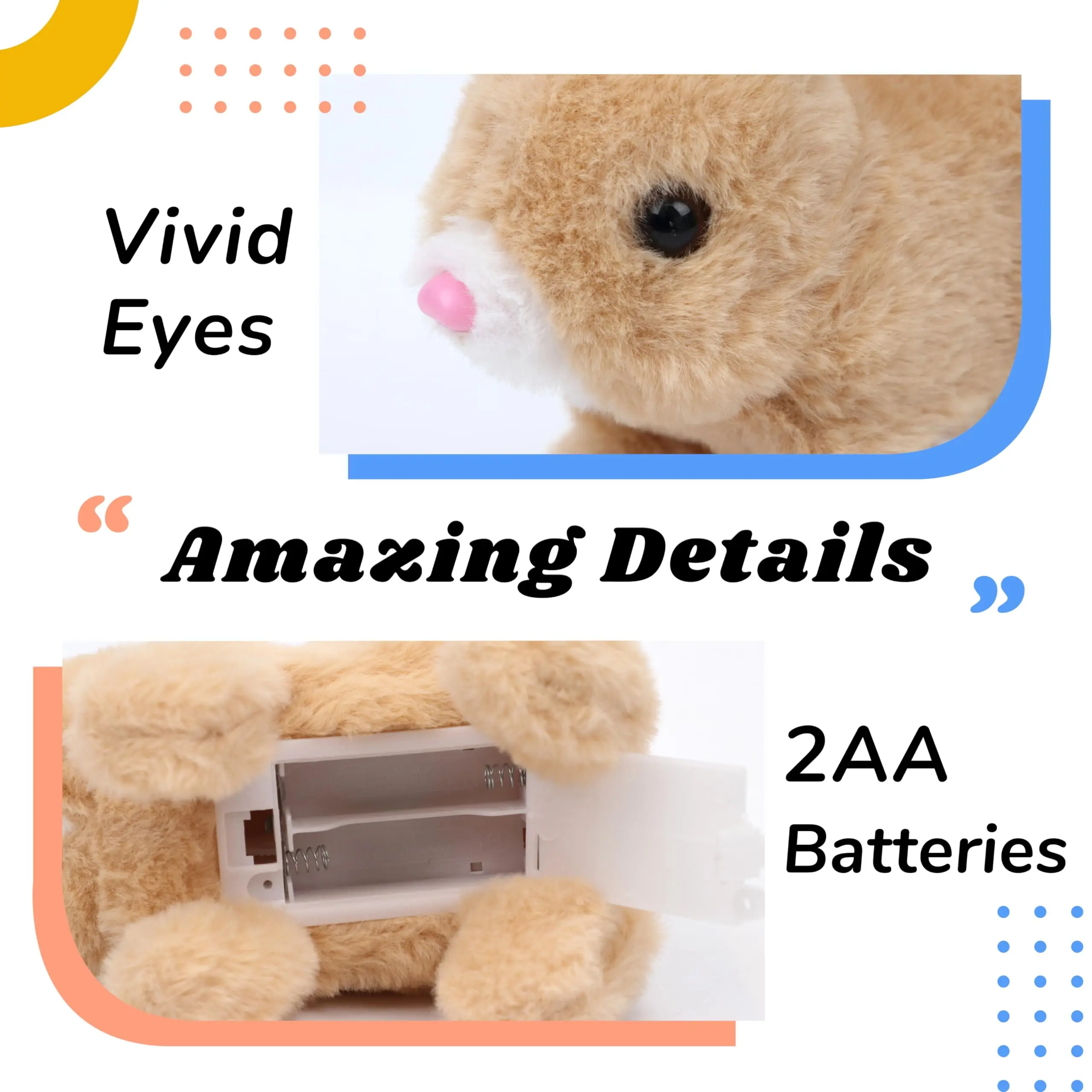 ·HOPPING AND WIGGLING: This is a vivacious bunny, it features with hopping, wiggling and twitching nose. This interactive bunny will jump forward and make a sound, while the toy's ears will begin to shake, and the toy's mouth will chew like a real animal, cute enough to attract the attention of children. It is a good bunny toy to make your child happy after opening switch.