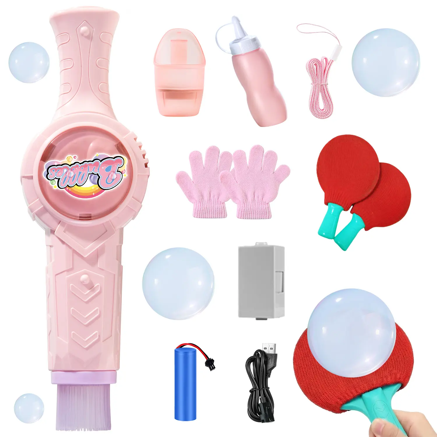 This interactive STEM toy features a touchable smoke bubble wand with lights and music. Now upgraded with paddles, kids can gently bounce and play with the bubbles like ping pong, creating a fun, magical, and satisfying experience.