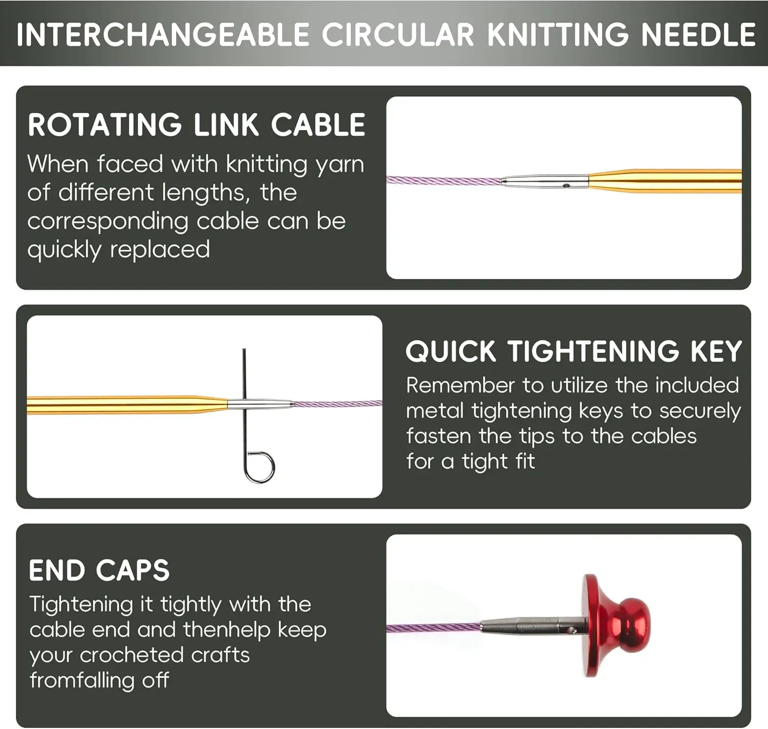 Interchangeable and Flexible: This knitting set features interchangeable knitting that allow you to easily swap between different sizes and lengths, making it for various knitting projects. The included tightening ensure that the stay securely attached to the cables, preventing any accidental loosening.