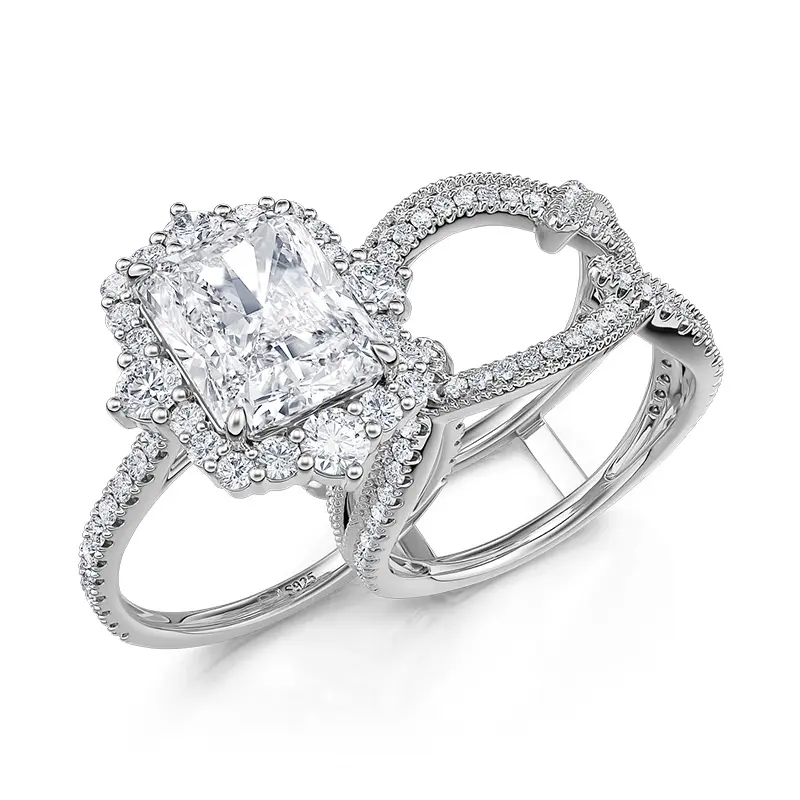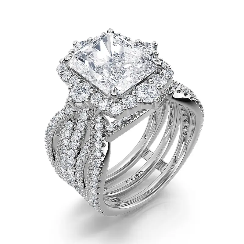 Jeulia Interchangeable Halo Engagement Ring set Twisted Radiant Cut Sterling Silver Sterling Silver Zircon