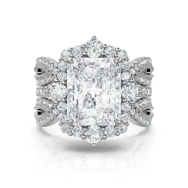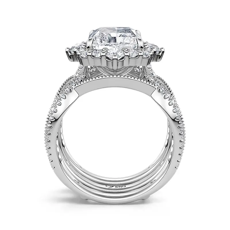 5. Jeulia Interchangeable Halo Engagement Ring set Twisted Radiant Cut Sterling Silver Sterling Silver Zircon