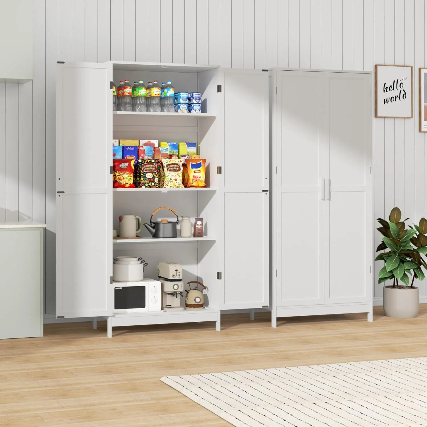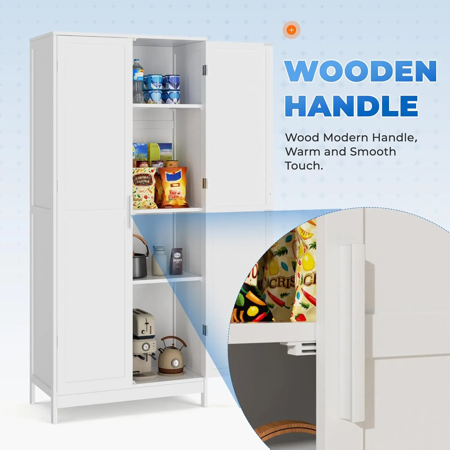 ·『Popular Designs』: The simplicity that never goes out of style. Our food pantry cabinet is accented with 2 shaker style door, legs, wood handle, adding dimension and sophistication. Whether in your kitchen, living room, or office, it will add a touch of elegance