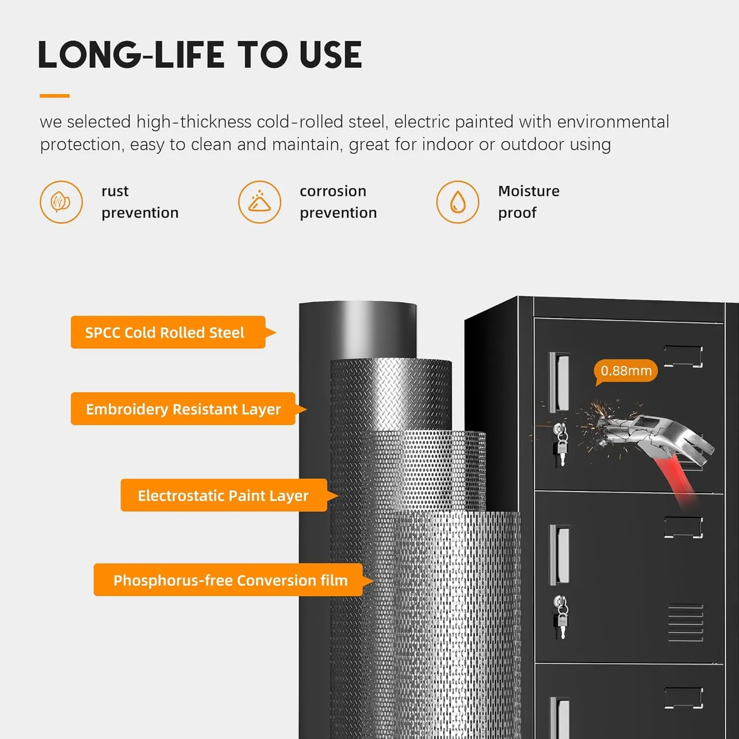 ·Tall locker cabinet is made of high-quality steel and comes with 2 locks to ensure your privacy