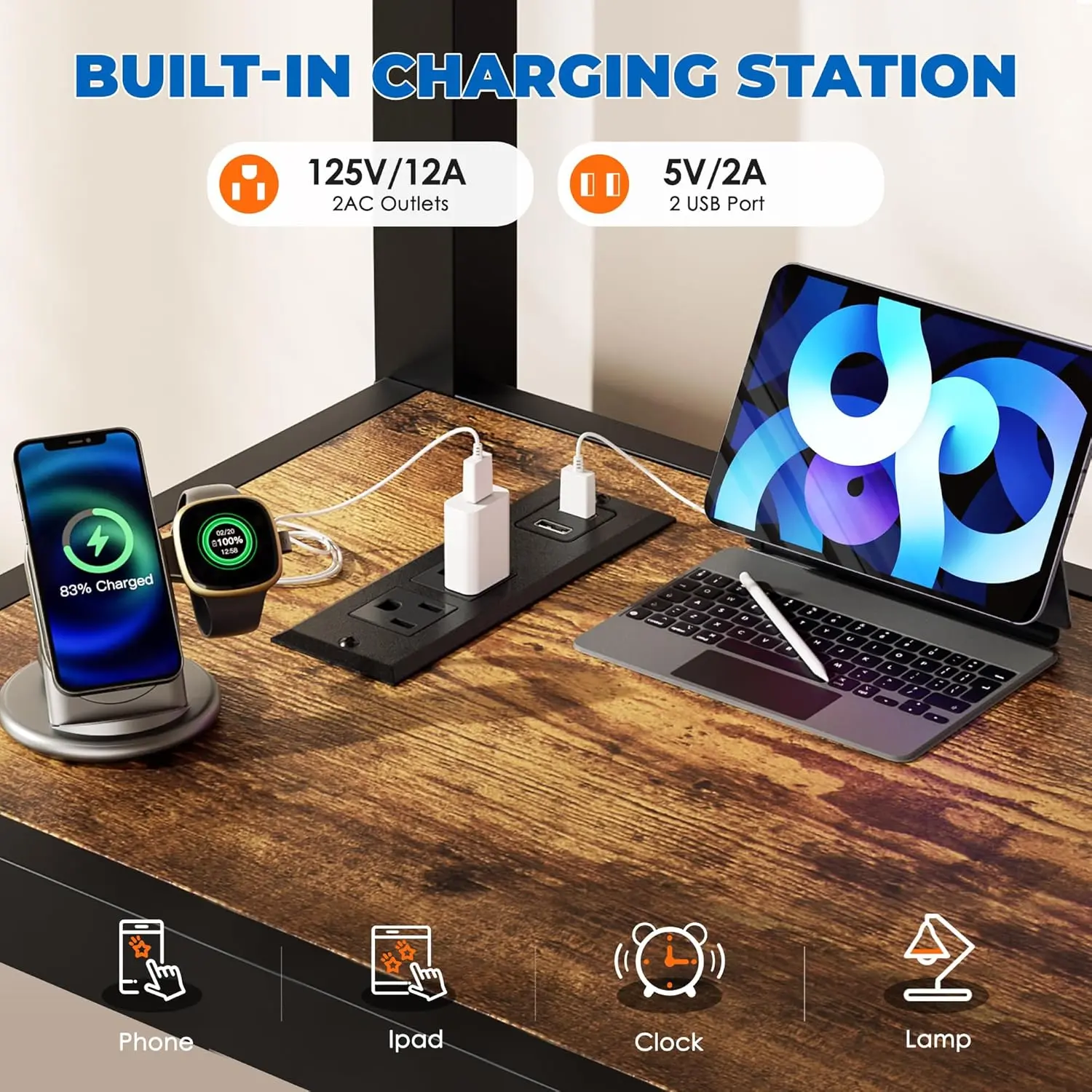 ·【Desk with Build-in Power Outlet】The adult loft bed is equipped with a built-in power socket, two sockets and two USB ports, which are convenient for charging your mobile phone, computer, and table lamp, and creating convenience for your life.