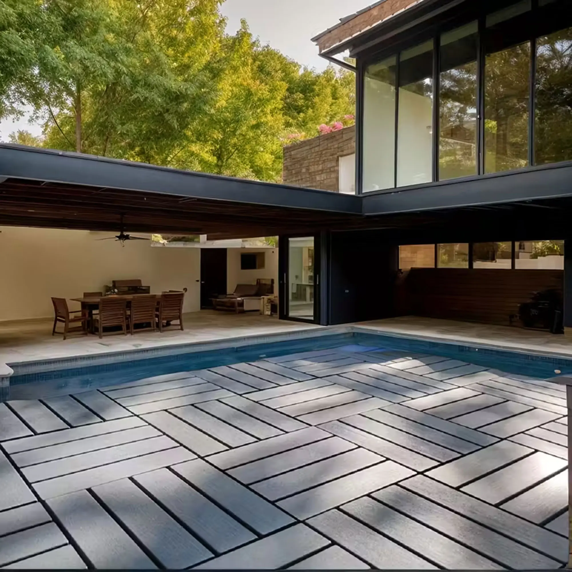 My backyard isn't complete... yet. I bought 1 box 44 tiles. I needed 2 boxes. Probably won't use all. I like it so far. Easy to put together, water runs right off, and there lightweight. I'll post pics when all complete but until then ill show what the family has dont so far.