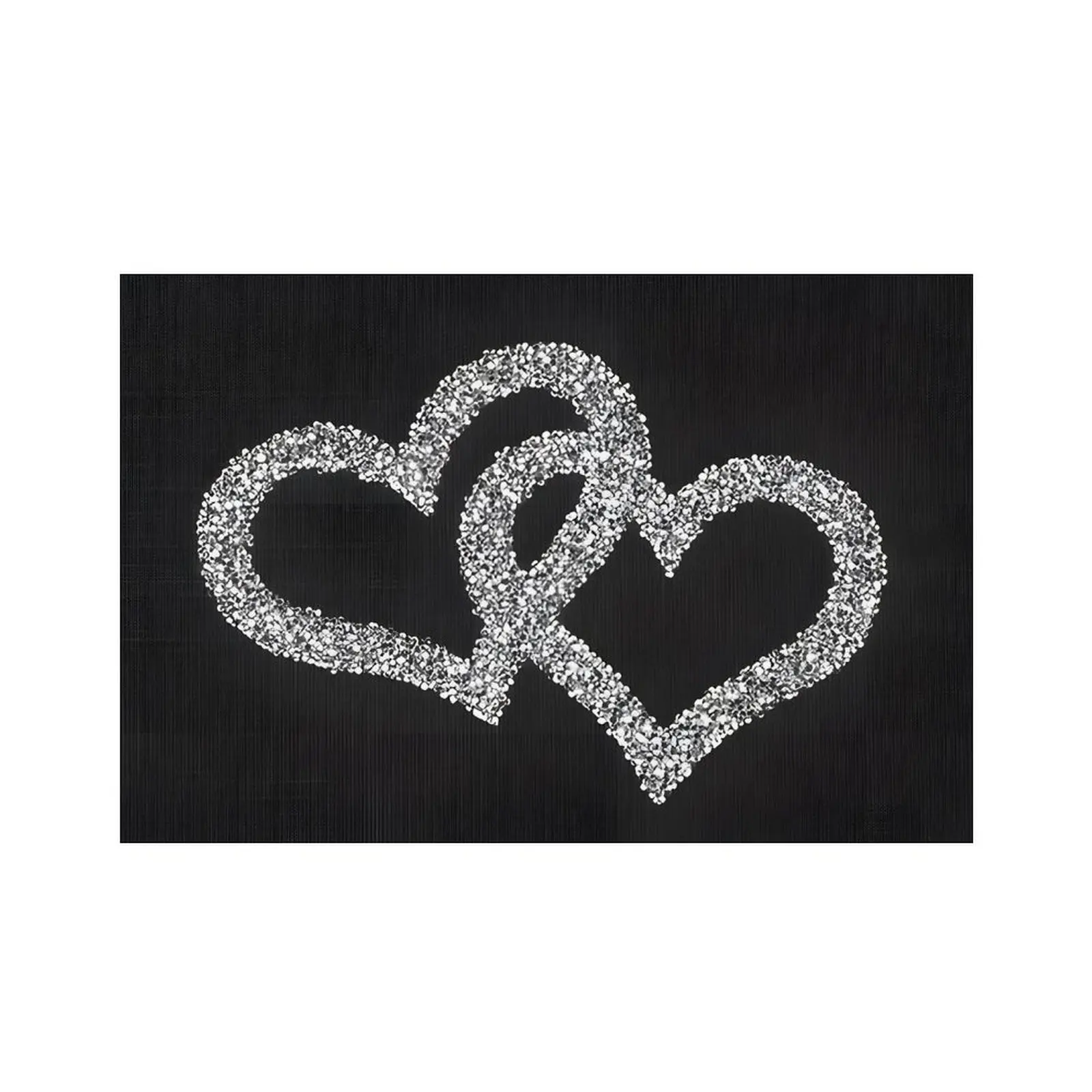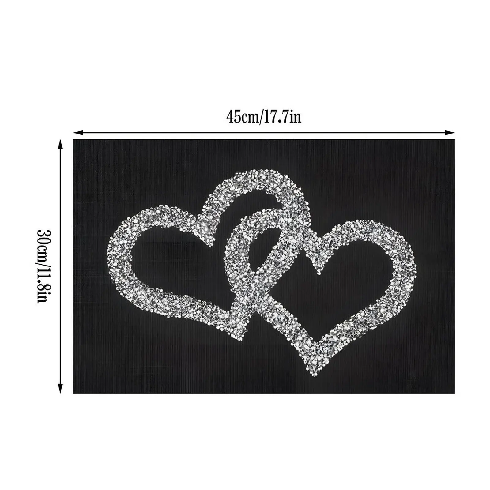 Interlocking Hearts Placemat Sparkling Silver Glitter Table Mat 1/4/6 Pack Romantic Family Dining Decor Wedding Anniversary Table Setting Coasters Tableware