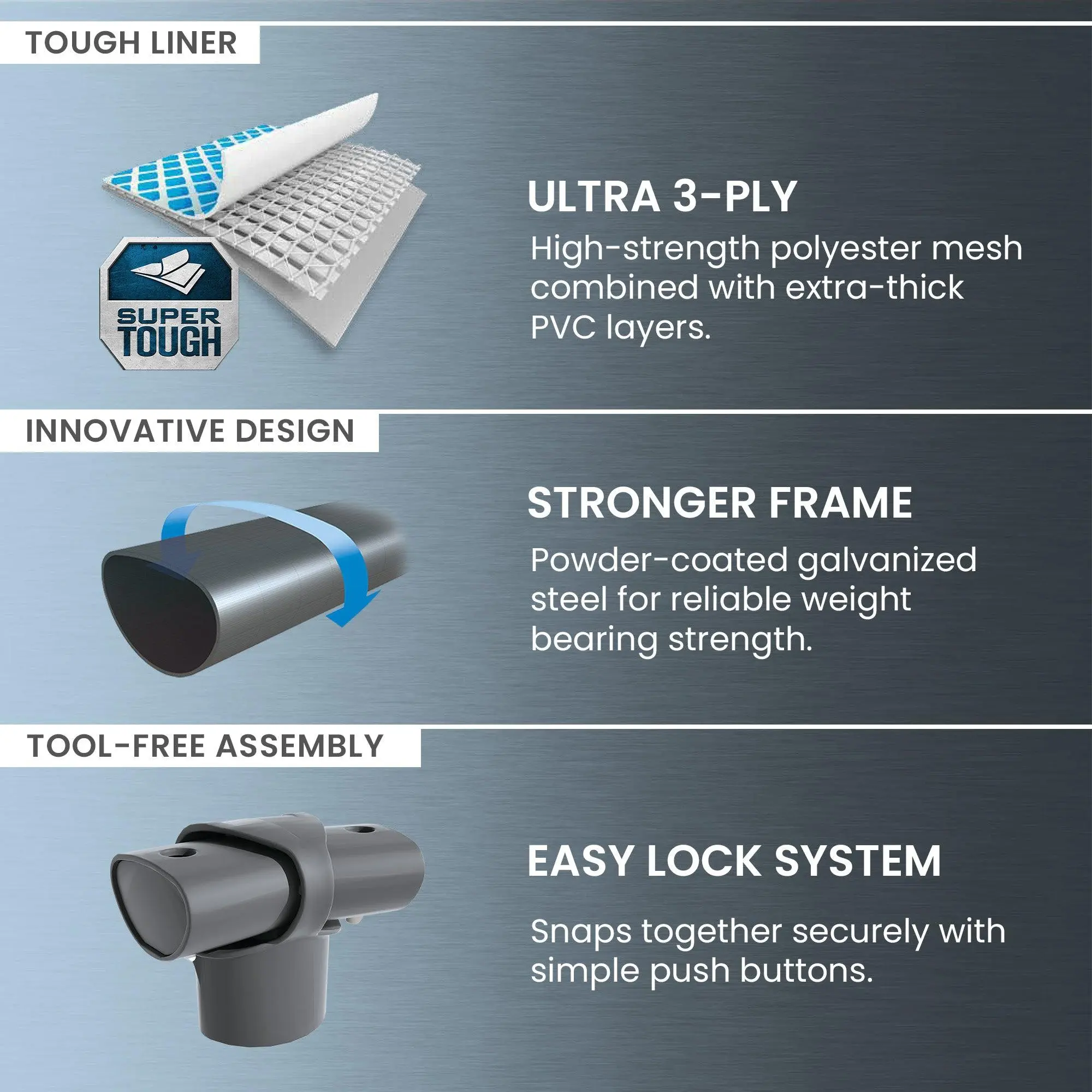 Durable frame is made of high-quality, galvanized steel with a precision-engineered locking system