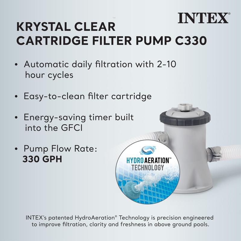 ·Easy Setup: The pool set includes an Intex 330 GPH filter pump, which ensures clean and clear water by leveraging Hydro Aeration Technology.