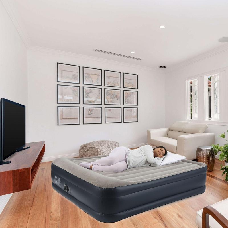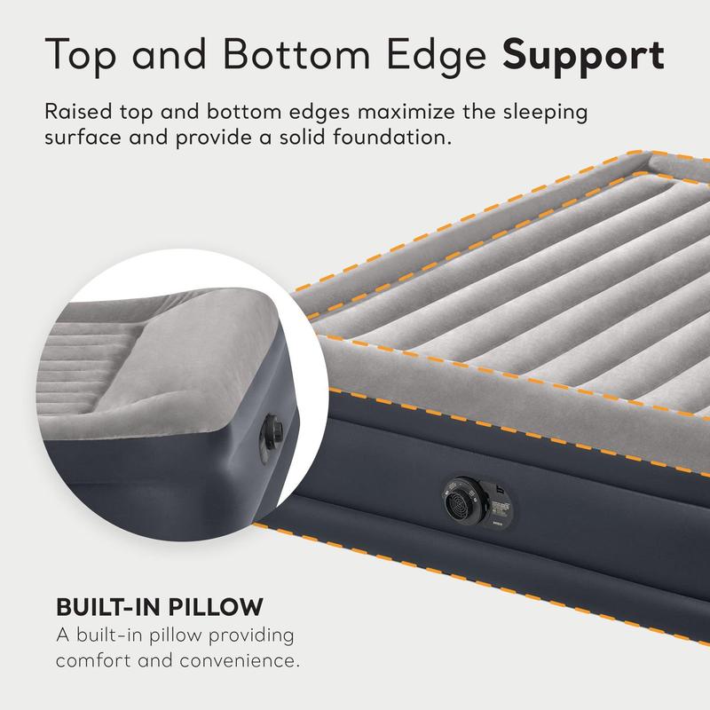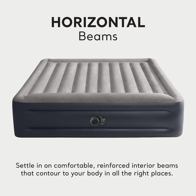 Enjoy a good night's rest and a quick set-up on all of your camping trips with the Intex Blow Up Mattress Air Bed. Each relaxing king-sized air mattress is big enough to accommodate 2 people to rest on. Perfect to take camping or to use as an extra bed for house guests, these inflatable air mattresses feature Fiber-Tech interior construction for firmness and support. The velvety mattress top allows for comfortability and softness, making anywhere the perfect spot for sleep and relaxation. Raised 16.5 inches for your convenience, the air bed also has indented sides to help grip fitted sheets and an outer perimeter frame to provide additional stability and support. Each inflatable mattress comes with a built-in powerful internal pump for rapid inflation and deflation. With an approximate inflating time of 3.15 minutes, you can begin to use the air bed right away.For a great rest, convenience, and a no-hassle set-up, add these Intex Blow Up Mattress Air Beds to your next camping trip or guest room.