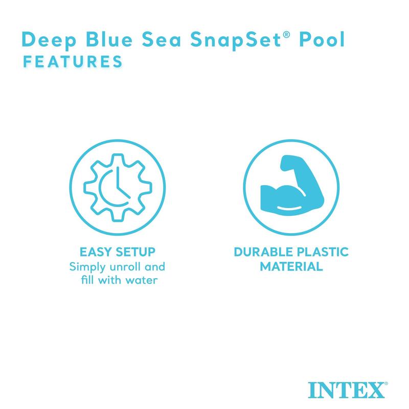 Say hello to instant refreshment and entertainment with the Intex Deep Sea Blue 8 Feet x 18 Inch SnapSet Instant Round Plastic Above Ground Swimming Kiddie Pool. This innovative pool is designed for children aged 3 years and above, making setting up this Intex pool effortless and quick.
