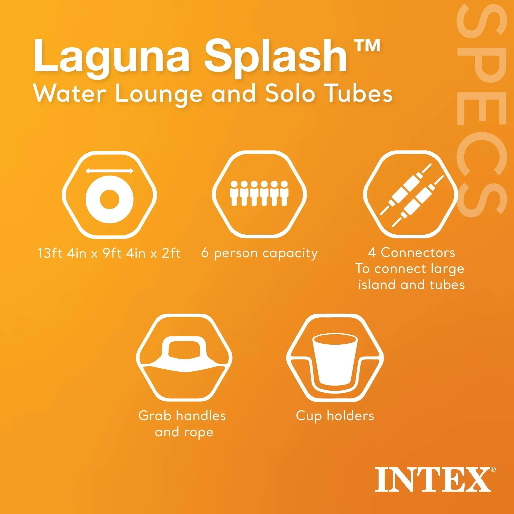 Look no further for the best summer hangout on the Laguna Splash Island Floating Water Raft from Intex. Grab your friends and kick back on this island. Featuring an oversized backrest, and an open mesh middle to keep your feet cool, you'll find yourself never wanting to leave the comfort of this raft. Have even more fun on the water with the 2 detachable loungers included for you to float off solo or to relax with a friend. Equipped with 4 easy-to-use connectors, you can keep close without worrying about straying off. The floating island is constructed of extra-thick sport gauge PVC vinyl materials for increased durability that can support up to 880 pounds. With 2 built-in cupholders on the island and 2 on each of the solo floats, you'll stay hydrated even on the hottest of days. Including 2 built-in durable grab handles and a boarding platform, getting on and off this tube will be easy. Have fun in the sun while floating on the waves of the water, lounging on the Intex Laguna Splash Island.