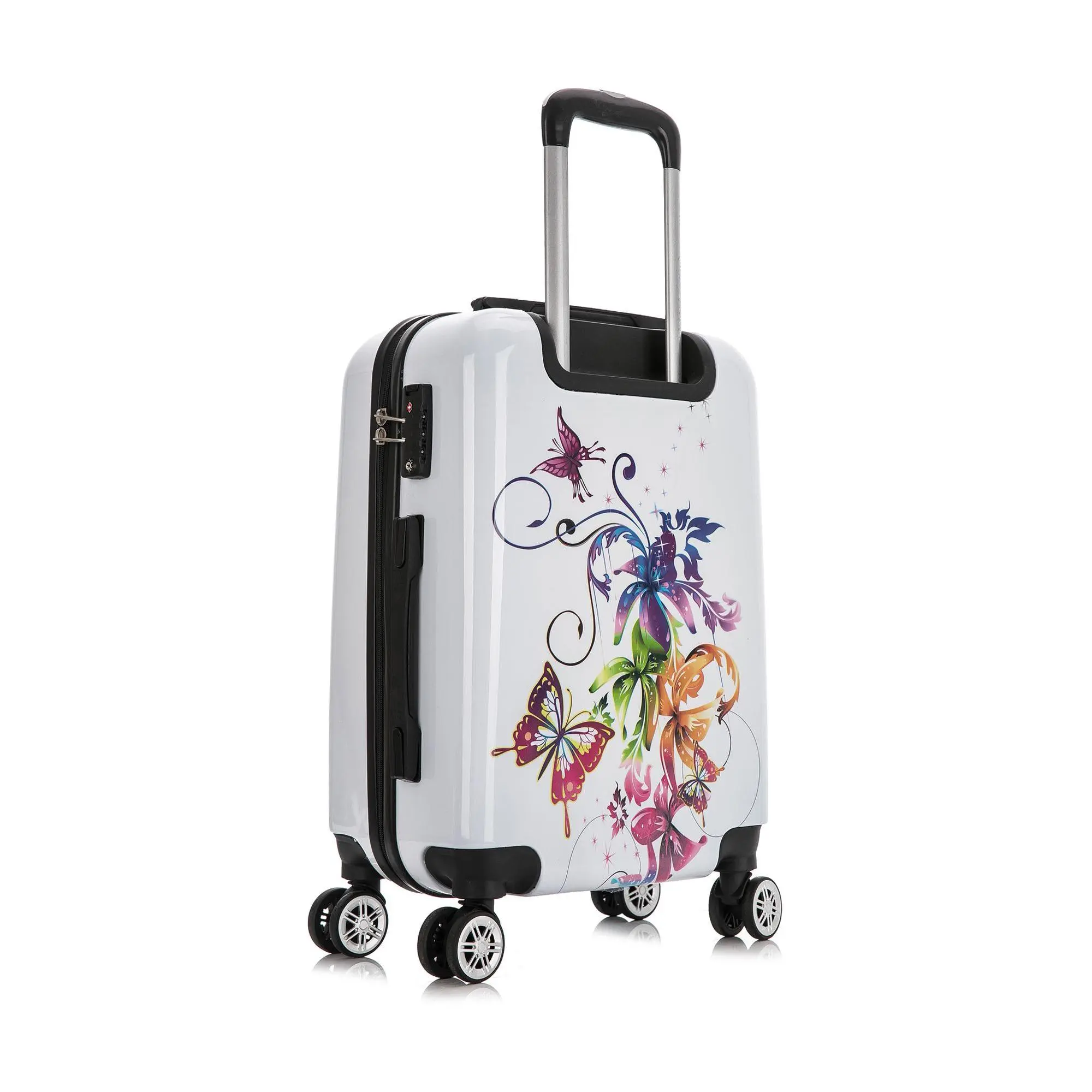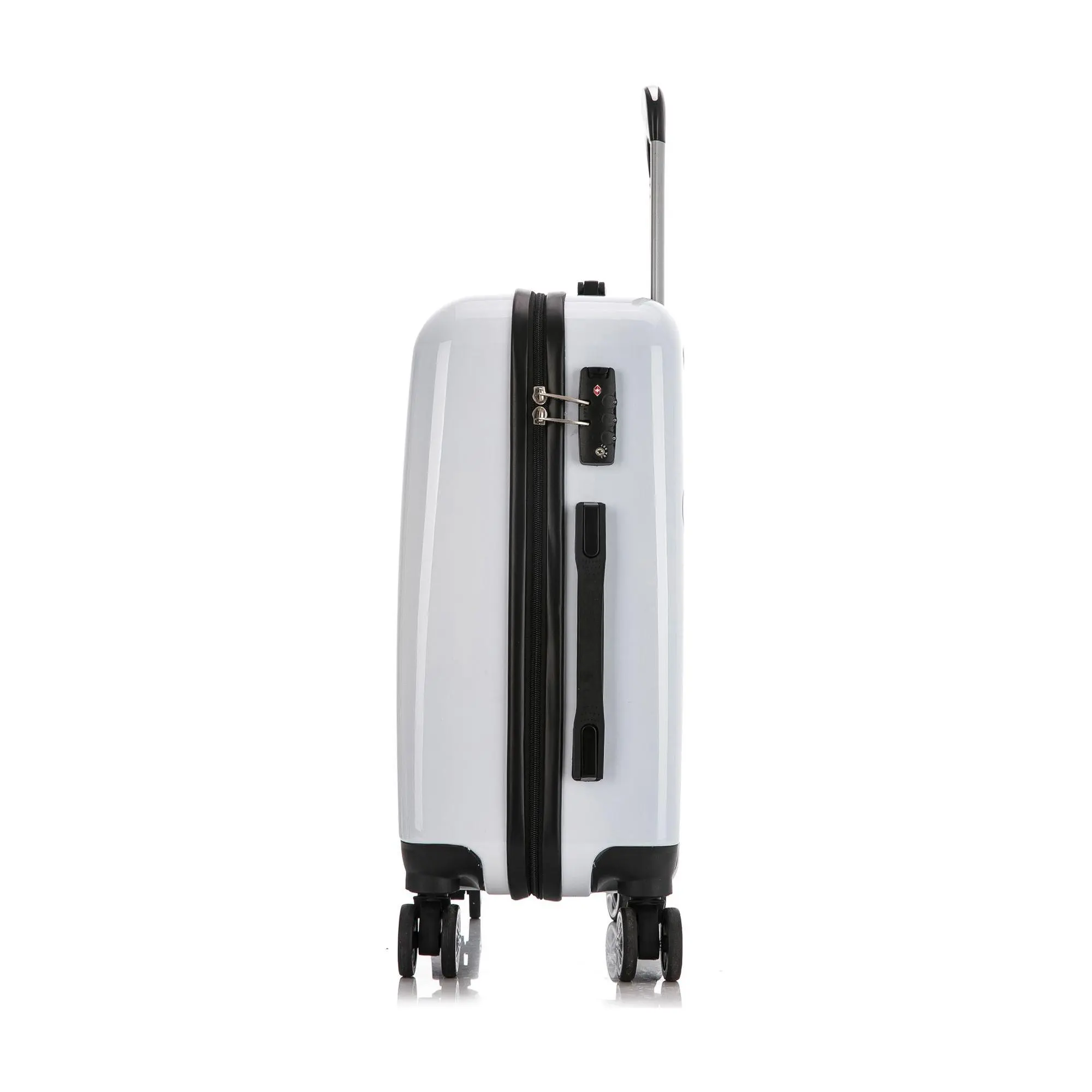 ·Hard-flex ABS/PC engineered exterior with brushed finish, side-mounted three-digit TSA combination lock, top and side ergonomic handles, four side studs, multi-directional 360-degree dual spinner wheels, locking retractable telescopic trolley handle