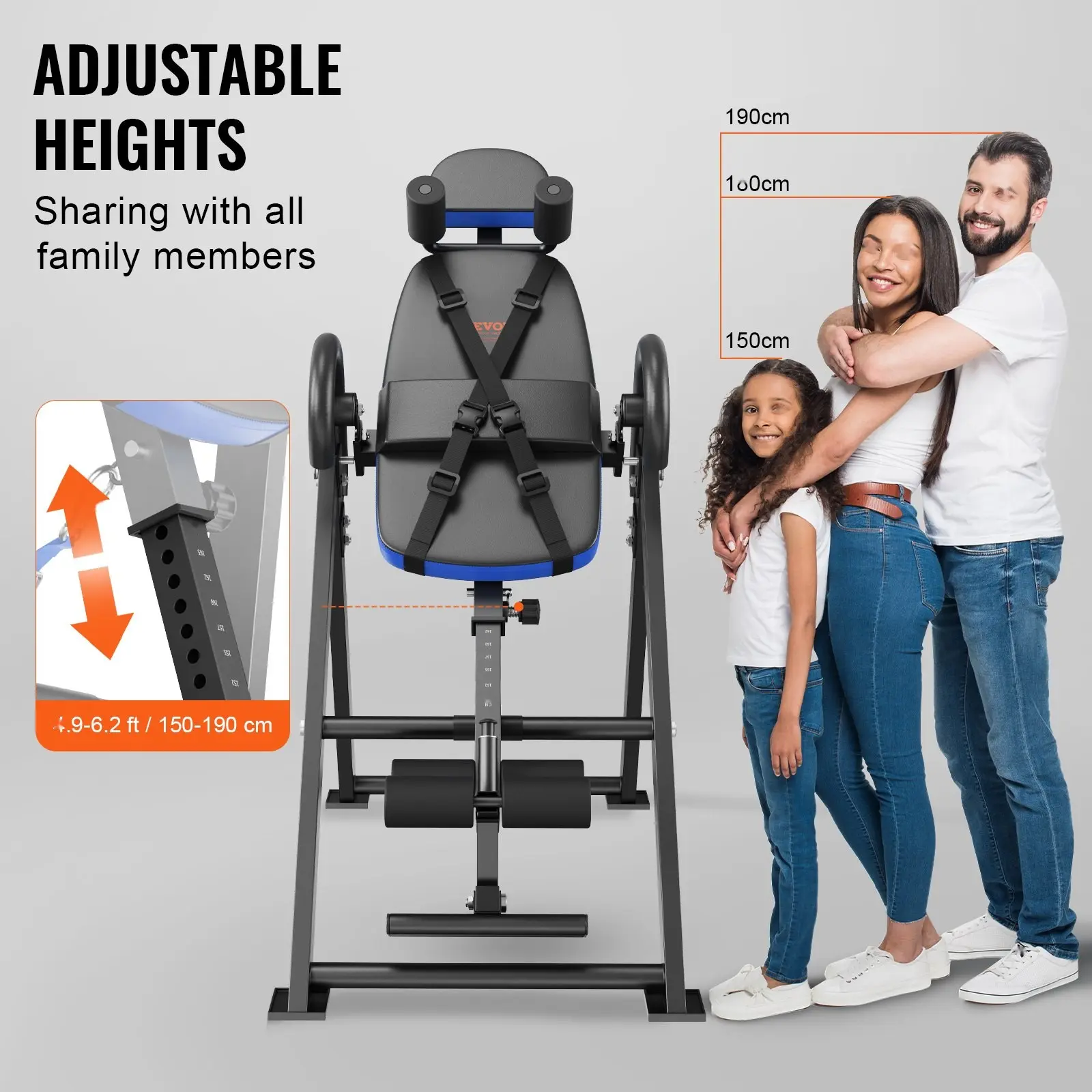·4.9-6.2 ft Adjustable Heights: Our folding inversion table is height adjustable, making it suitable for all family members. Whether you're tall or short, you can easily adjust the table to fit your height, ensuring a comfortable and effective inversion experience for everyone.
